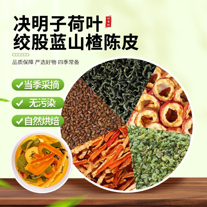 📚 山楂荷叶陈皮绞股蓝决明子原材料泡水喝的功效与作用正品中药材