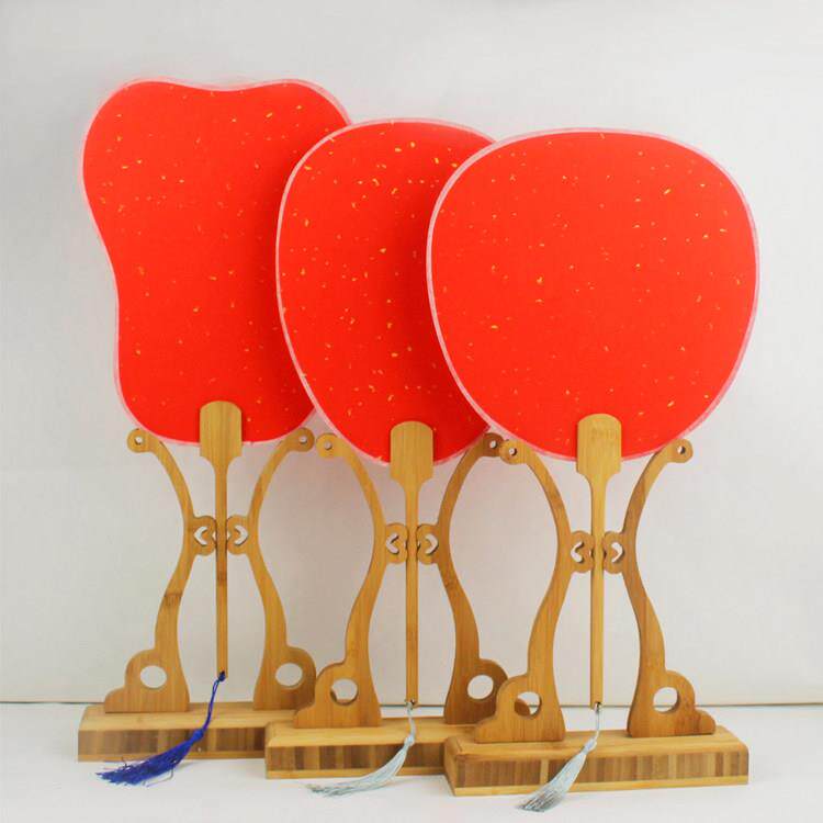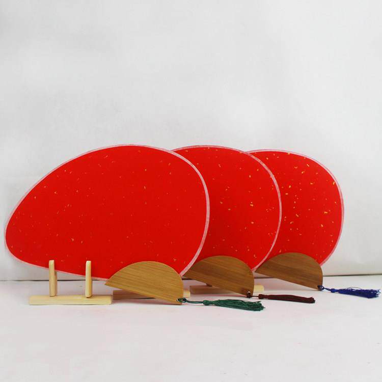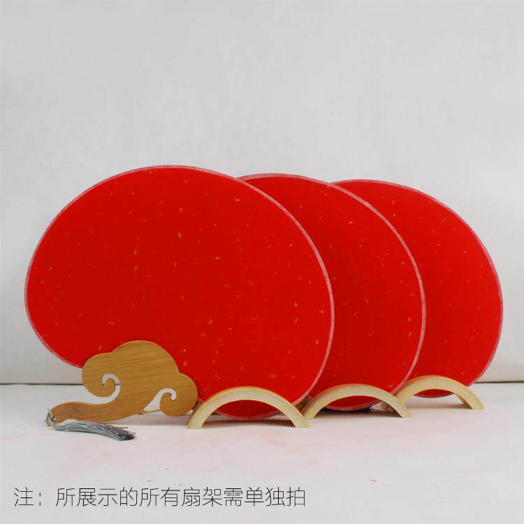 📚 加厚万年红洒金空白团扇子 半生熟书法毛笔DIY古风长柄大红色扇面