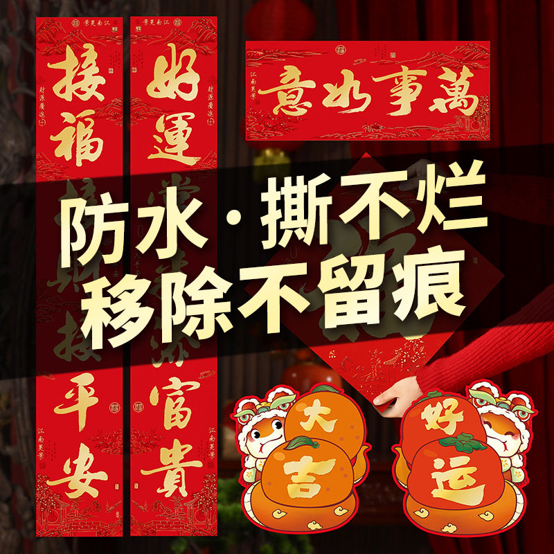 📚 对联带背胶2025过新年大门金字书法春联蛇年福字家用春节挥春装饰