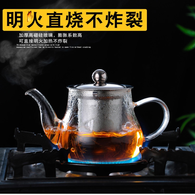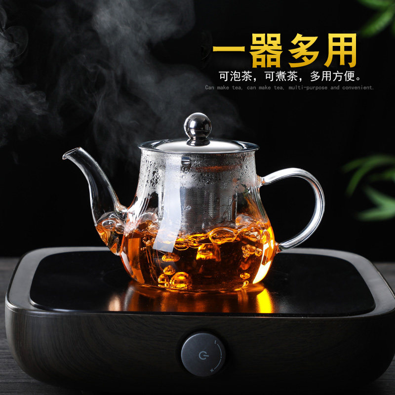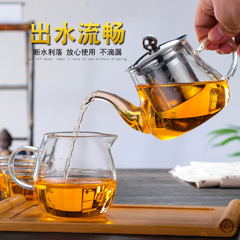 📚 耐热玻璃小茶壶茶水分离泡茶壶透明花茶壶功夫茶具加厚钢漏壶家用
