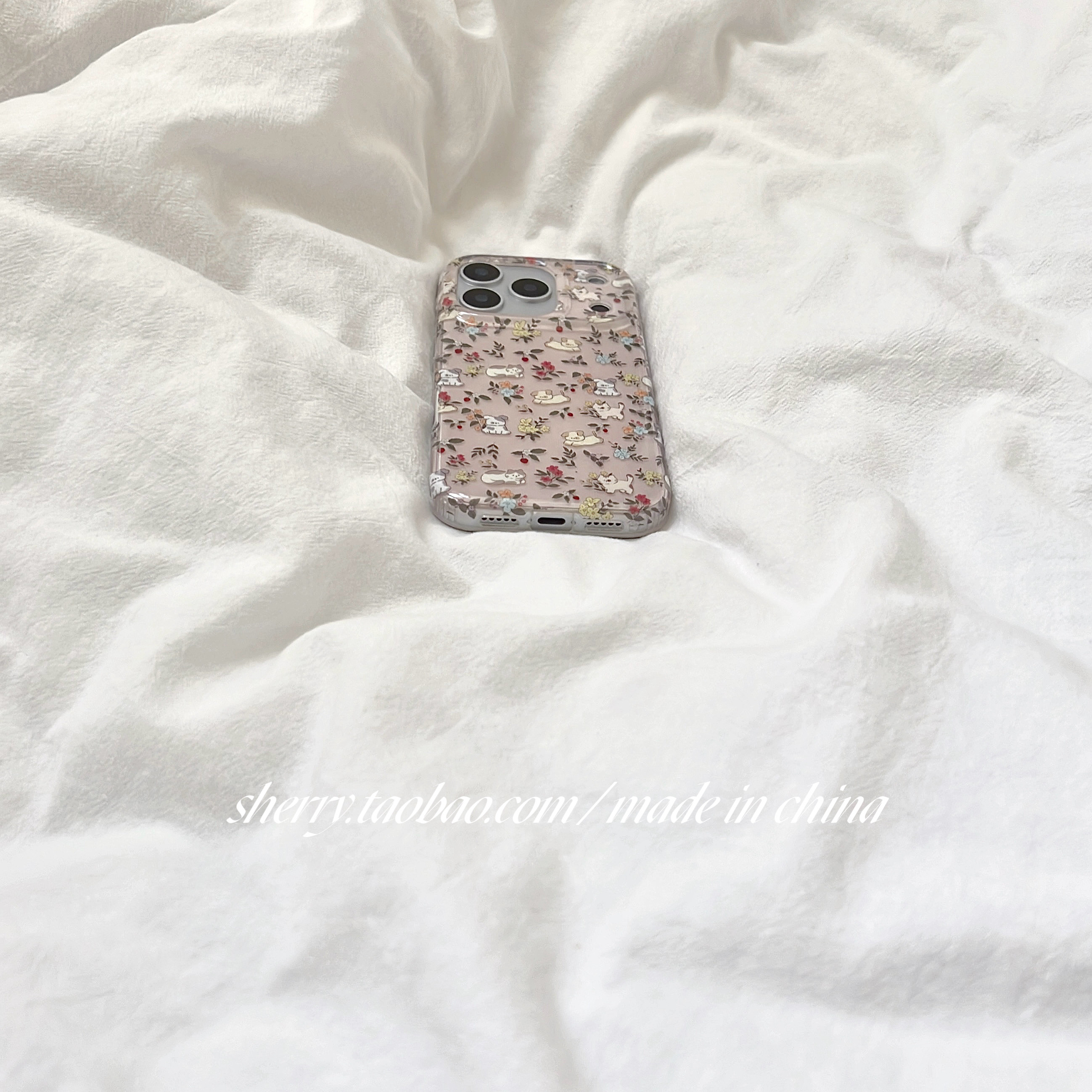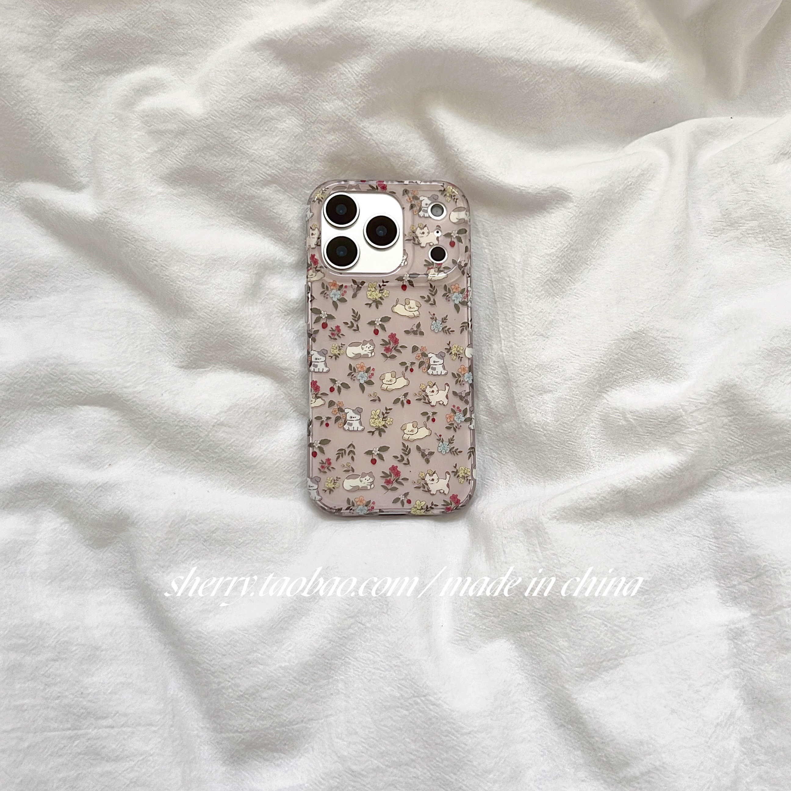 📚 SHERRY*ins风满屏花草叶子猫咪狗狗适用于苹果17ProMax手机壳iPhone16Pro小众少女心15简约14小清新卡通可爱