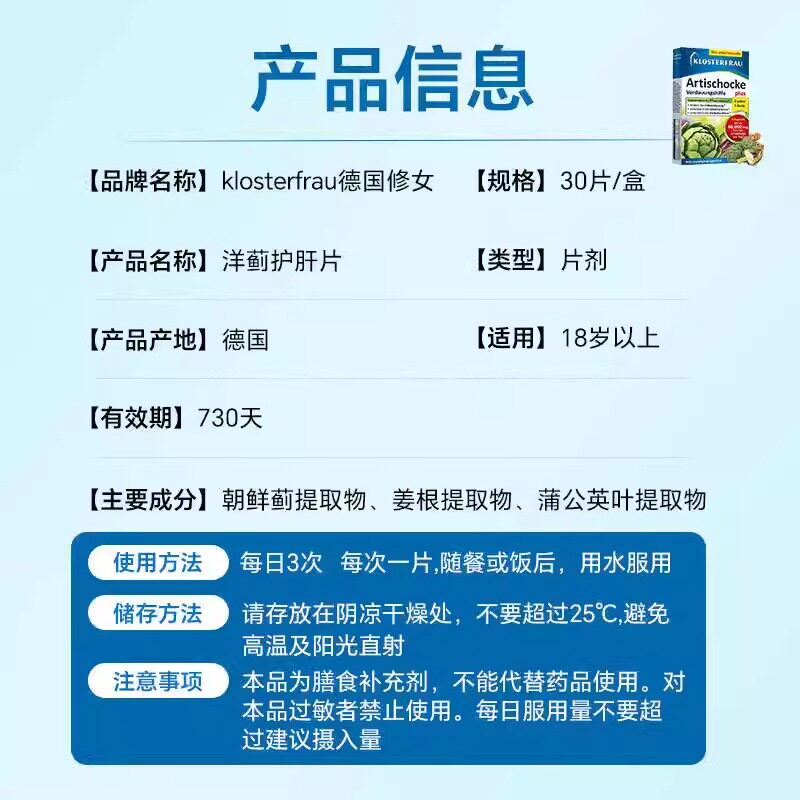 📚 【自营】德国修女湖远行肝肝片水飞朝鲜洋蓟护理片熬夜加班应酬