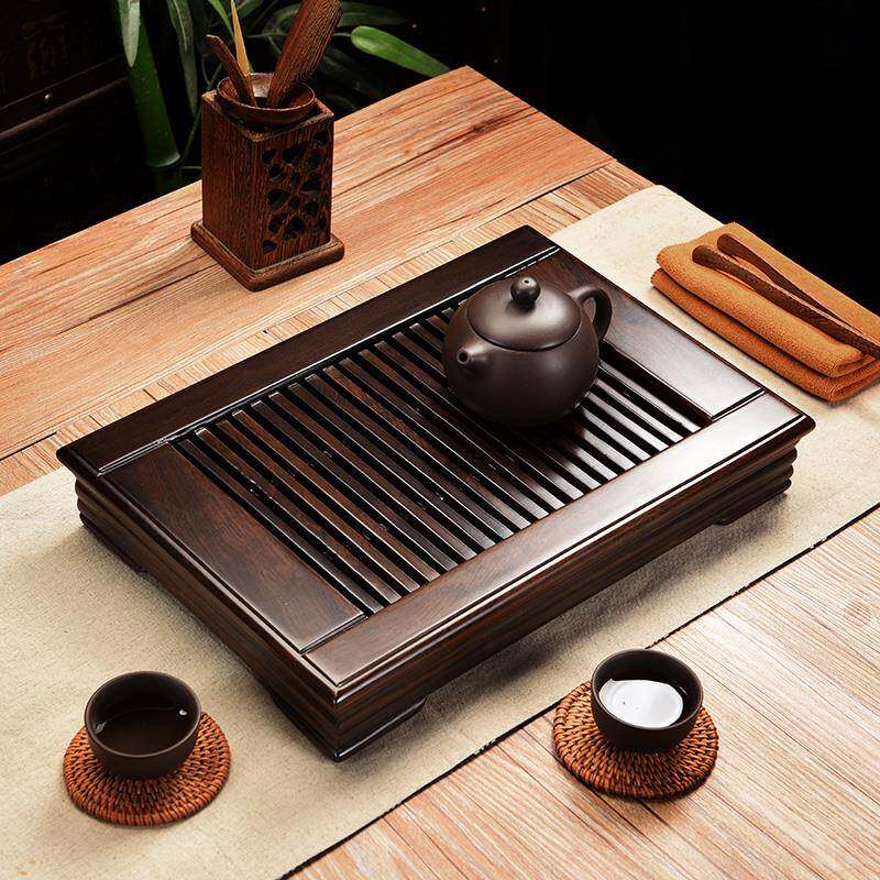 📚 OF9D小号鸡翅木茶盘储水式茶台黑檀茶海抽屉简约家用实木托盘迷长