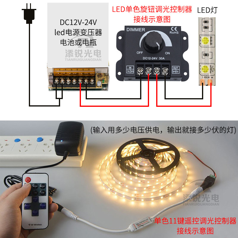 📚 LED调光控制器单色灯带COB灯条模组12伏24v5亮度调节旋钮遥控开关