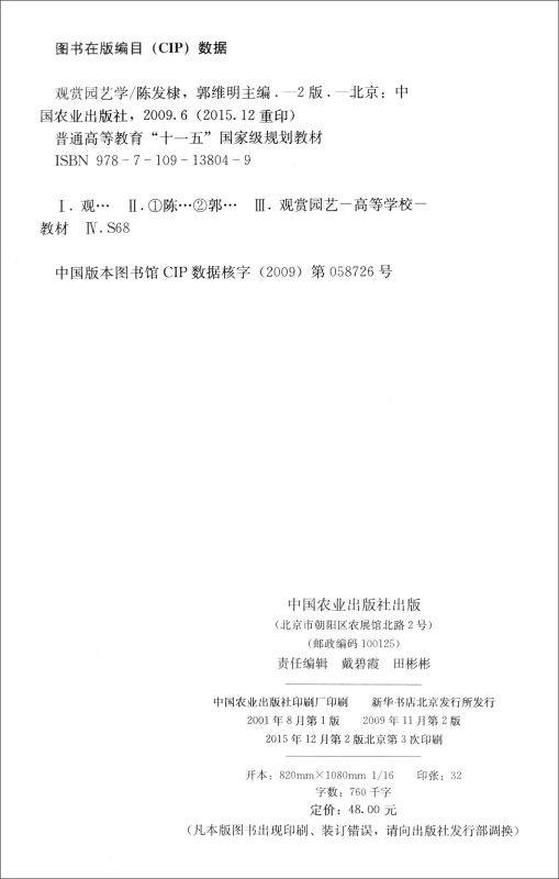 📚 观赏园艺学(第2版)陈发棣 郭维明主编 9787109138049 中国农业出版社教材