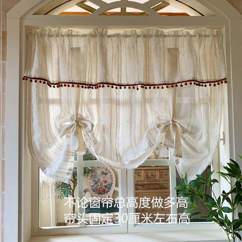 📚 奶油风中古风美式棉麻纱帘提拉帘升降帘罗马帘窗帘纱帘免打孔门帘