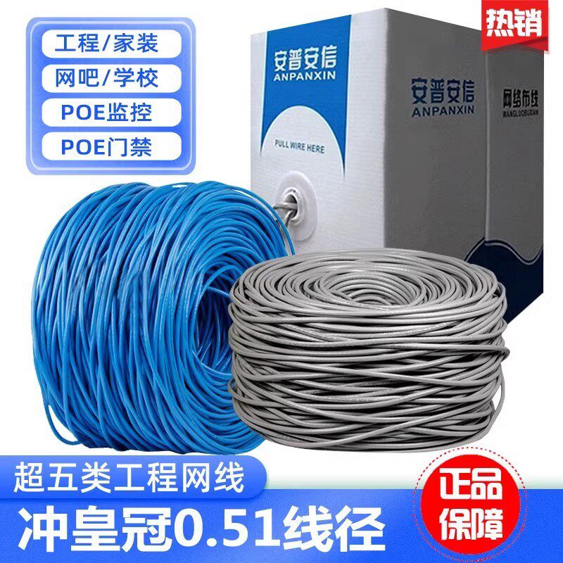 📚 安普国超五类高速网线家用工程双绞线POE监控线305米51线径