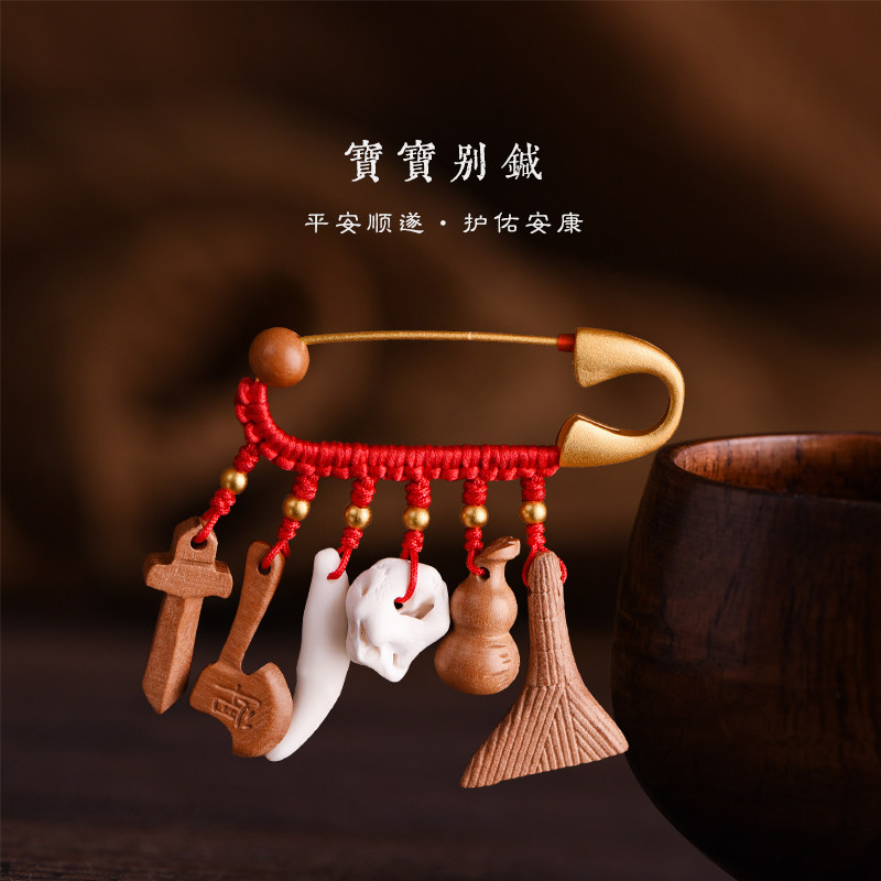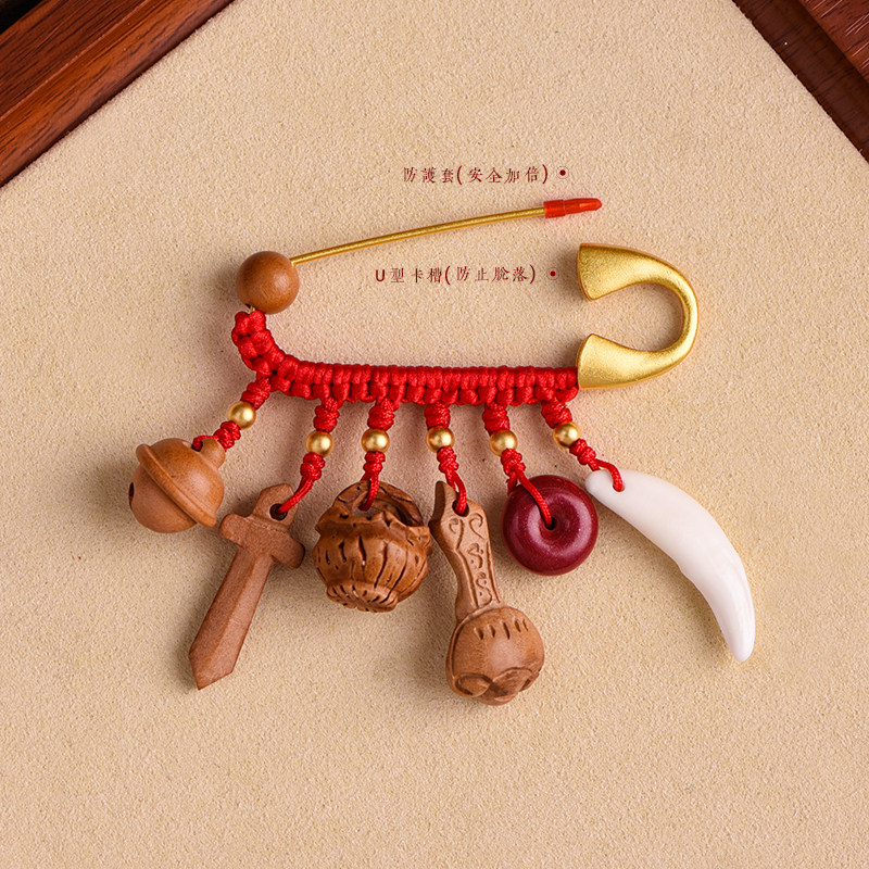 📚 宝宝婴儿防惊跳别针桃木剑斧头平安护身符狗牙猪惊骨压惊孕妈胸针