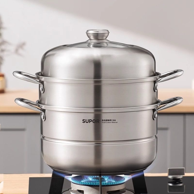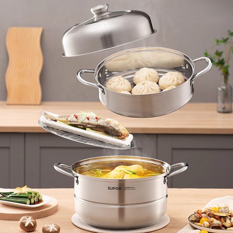 📚 苏泊尔双层蒸锅家用304不锈钢加厚多层蒸屉蒸笼包子燃气灶电磁炉