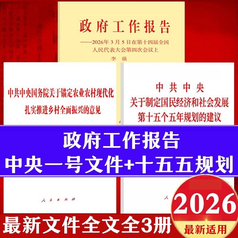 📚 现货2026年政府工作报告+中央一号文件单行本+十五五规划建议单行本白皮书全文辅导读本原文全国两会辅导读本学习问答文件汇编解读