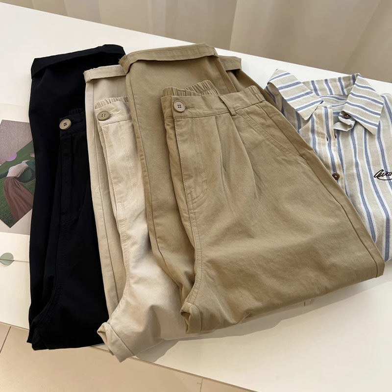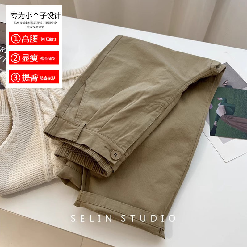 📚 150小矮个子卡其色工装阔腿裤女夏季宽松显高搭配145xs休闲直筒裤