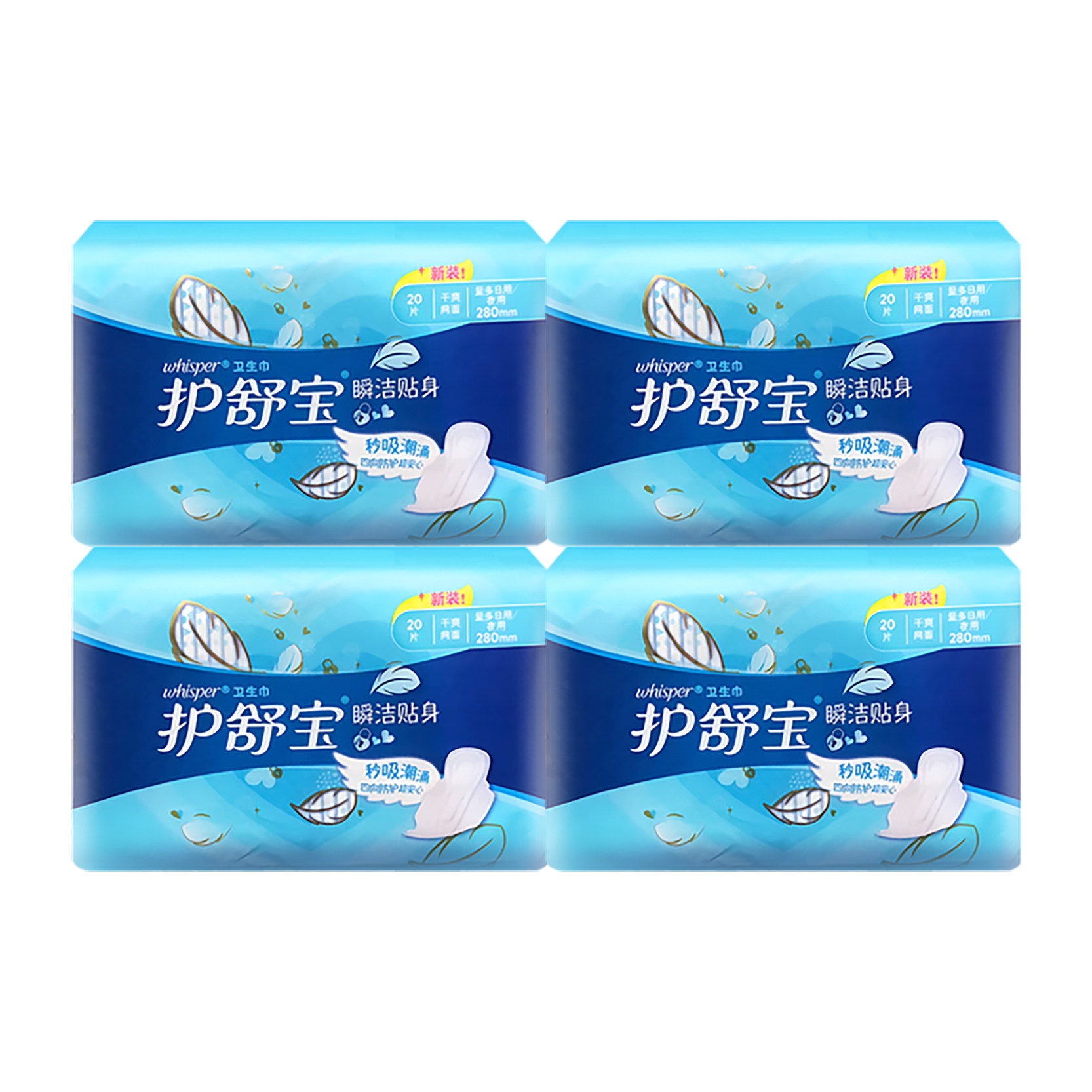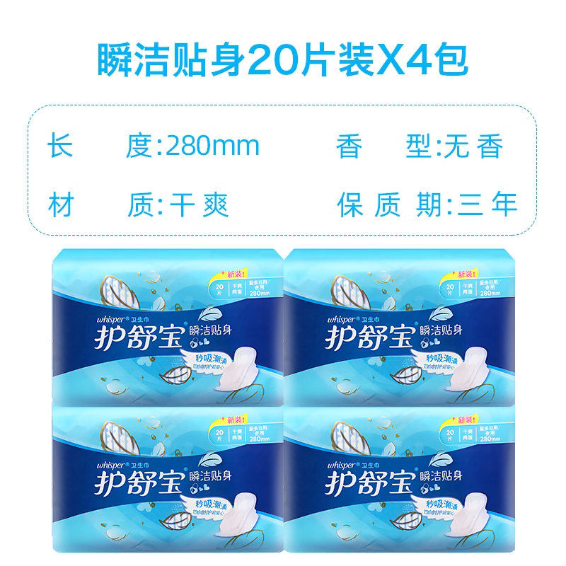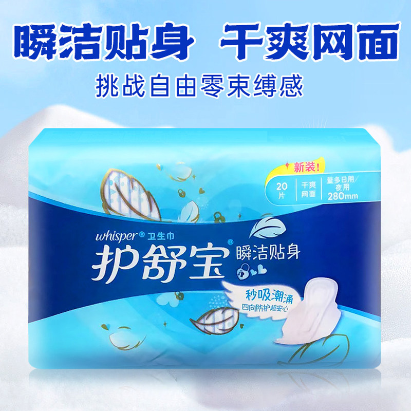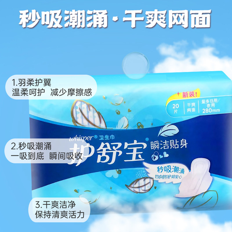 📚 护舒宝瞬洁贴身夜用280mm卫生巾20片量多日用纤巧干爽网面姨妈巾