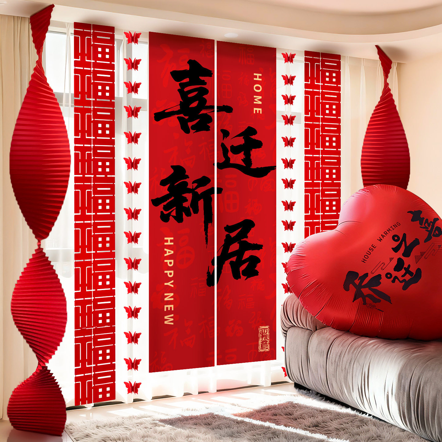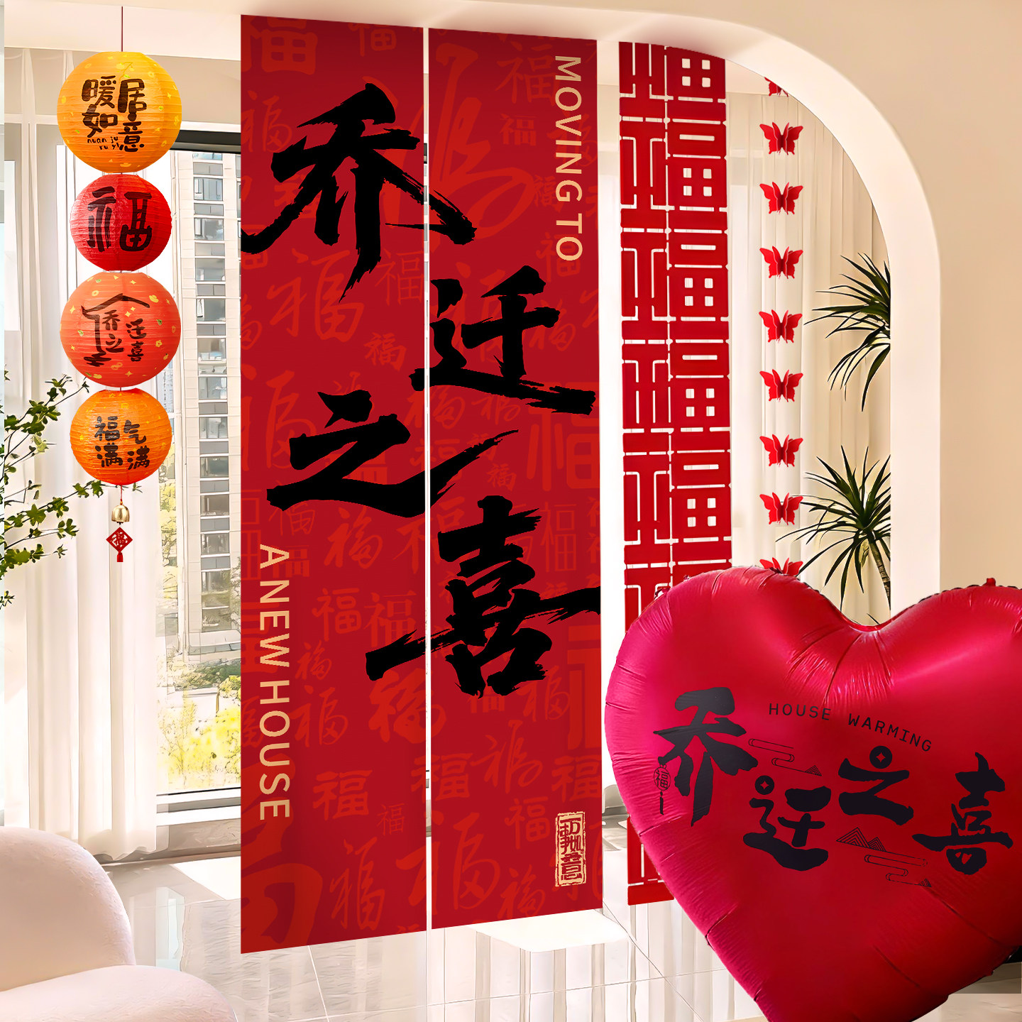 📚 乔迁之喜布置装饰条幅氛围感仪式用品新房客厅喜迁新居搬家背景墙