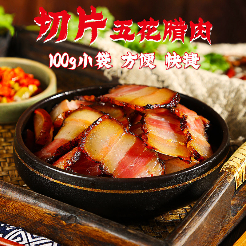 📚 重庆巫溪五花腊肉片100g四川烟熏腊五花肉片春游速食免切片腊肉