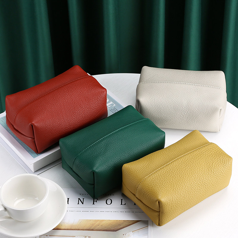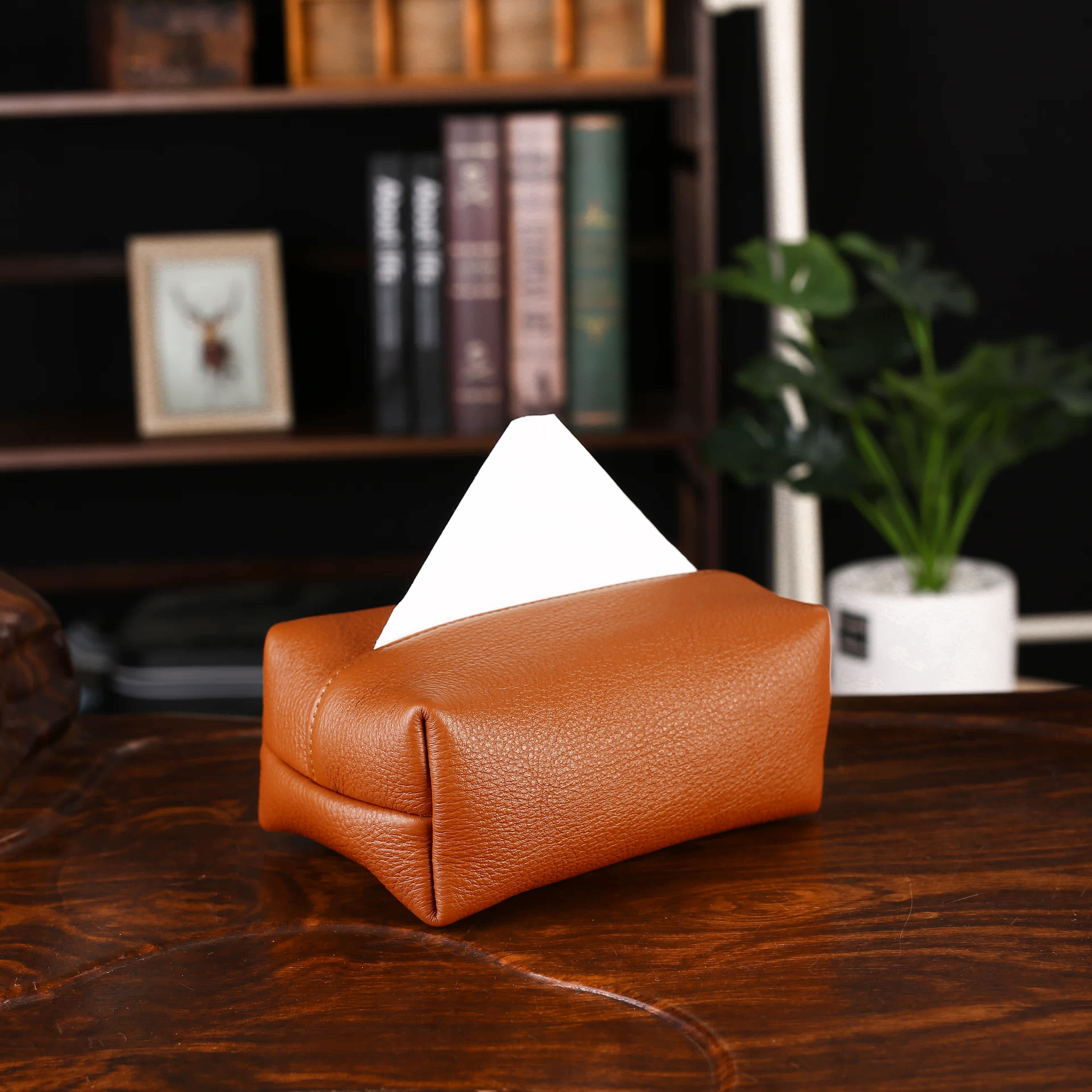 📚 狮伯龙车载头层牛皮纸巾盒多功能通用挂式创意汽车真皮抽纸收纳盒