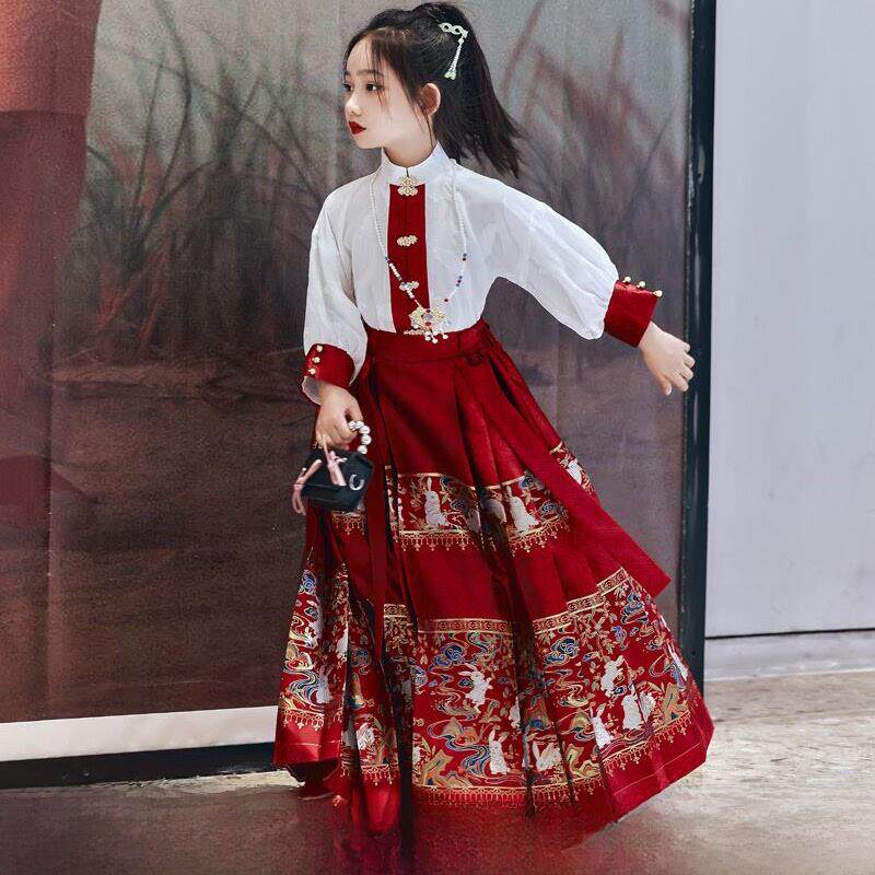 📚 明代改进型汉代女孩马面裙儿童春秋唐装民族古风汉代中式服装