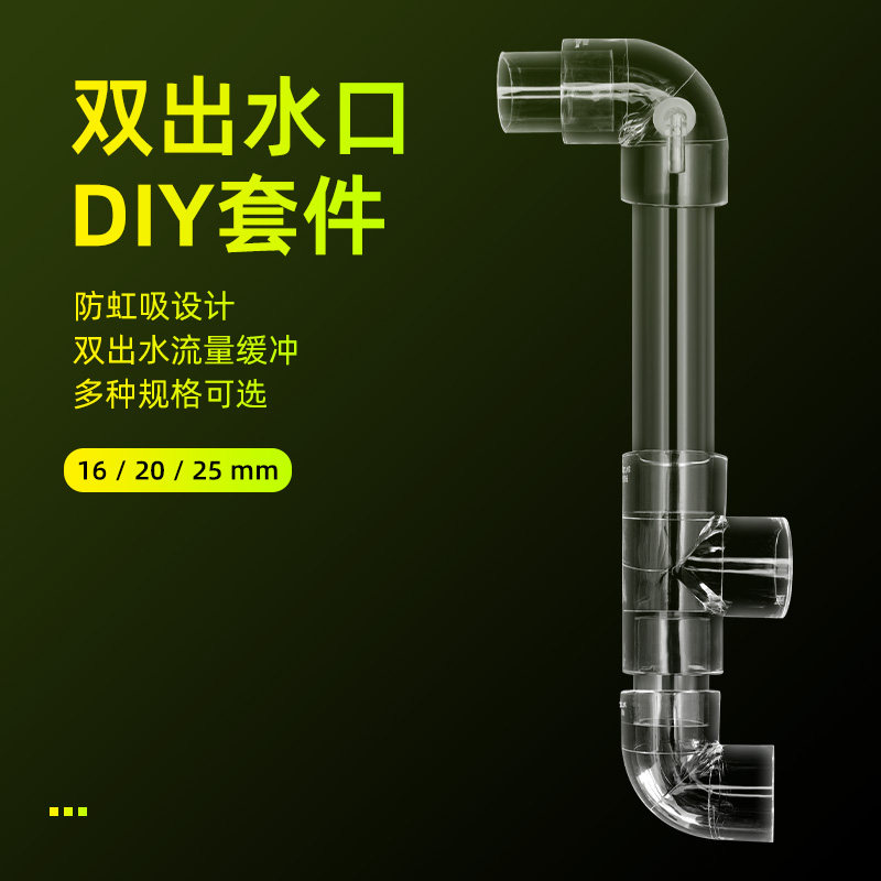 📚 鱼缸底滤侧滤双出水口上水口背包过滤进出水口管防虹吸二出水透明