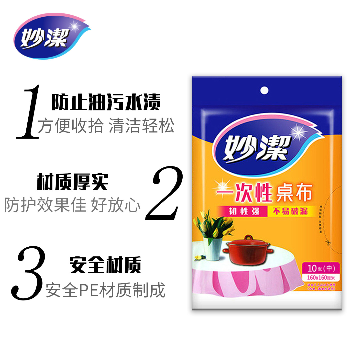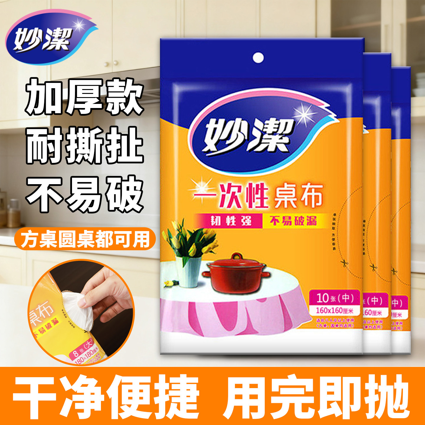 📚 妙洁一次性桌布家用酒店婚庆加厚大号正方形桌布塑料餐桌布加厚布