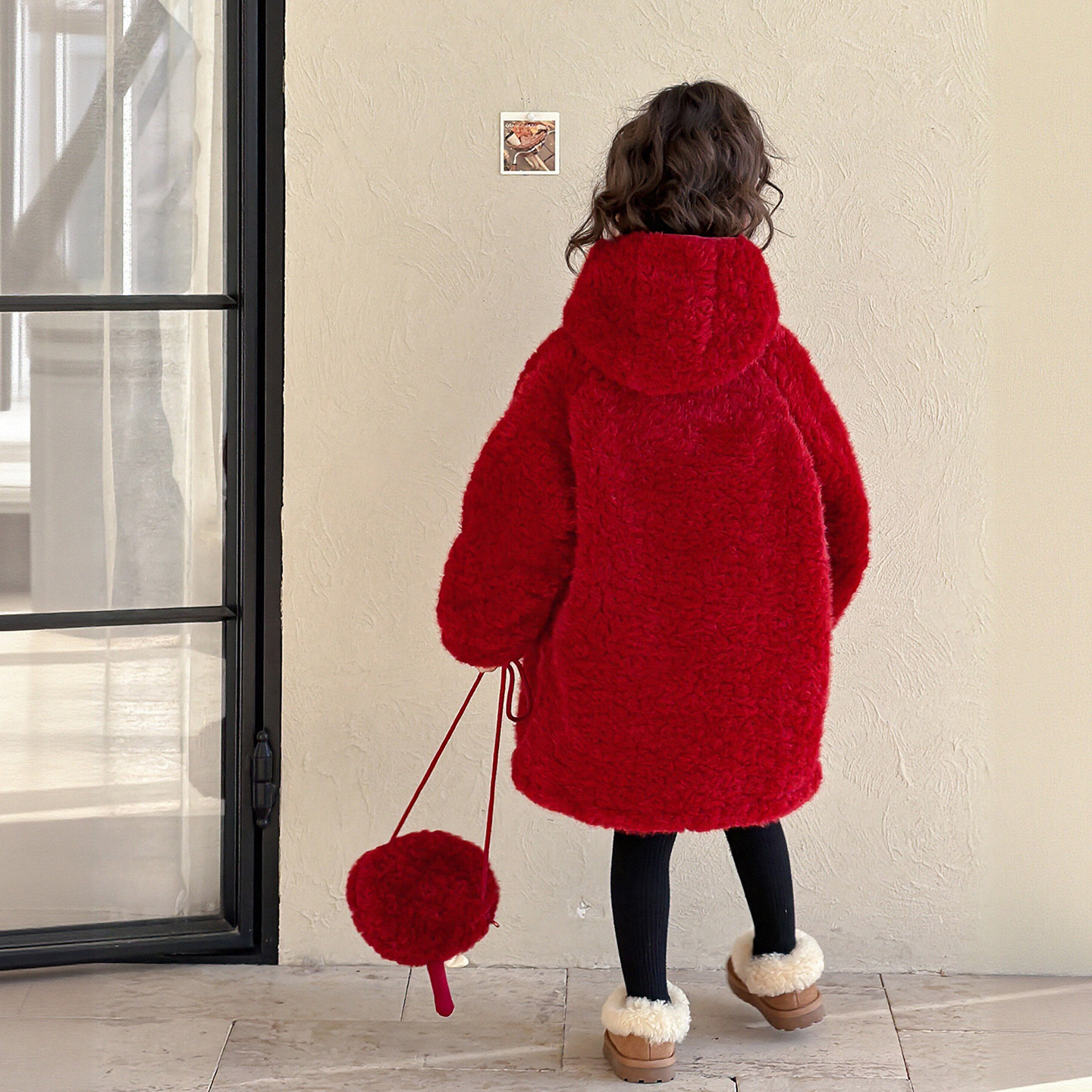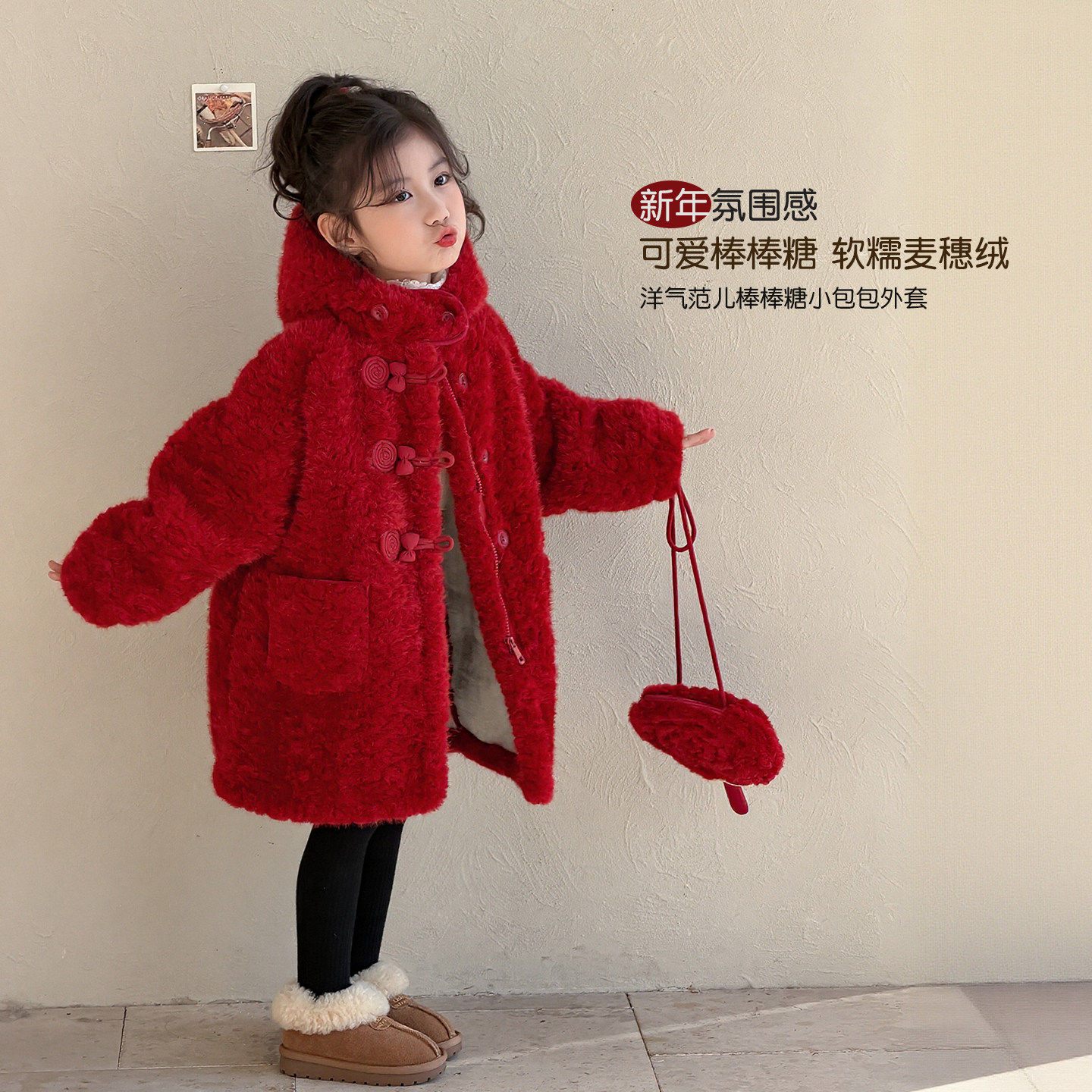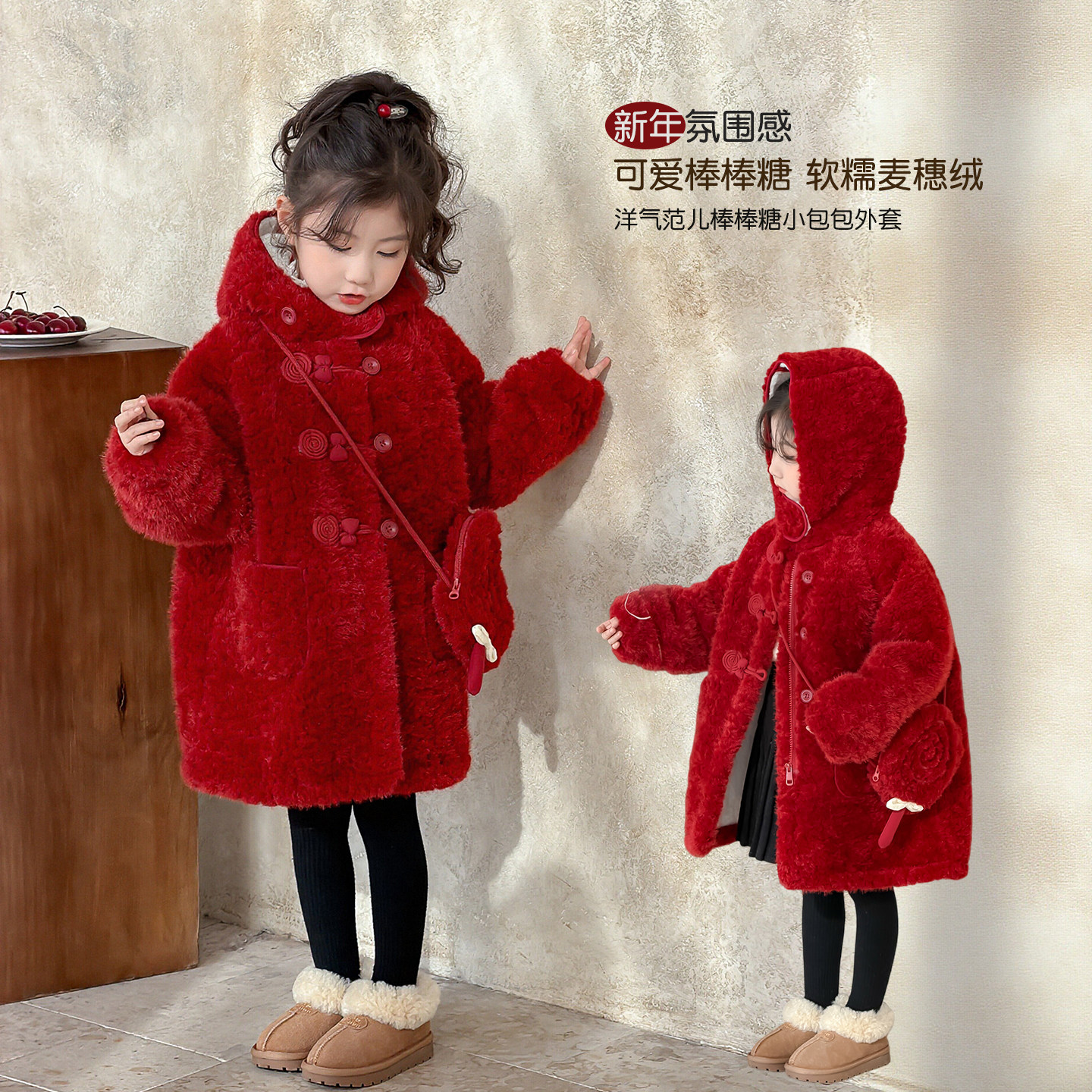 📚 女童红色外套2026新款马年12岁本命年女孩新年衣服儿童加绒毛毛衣