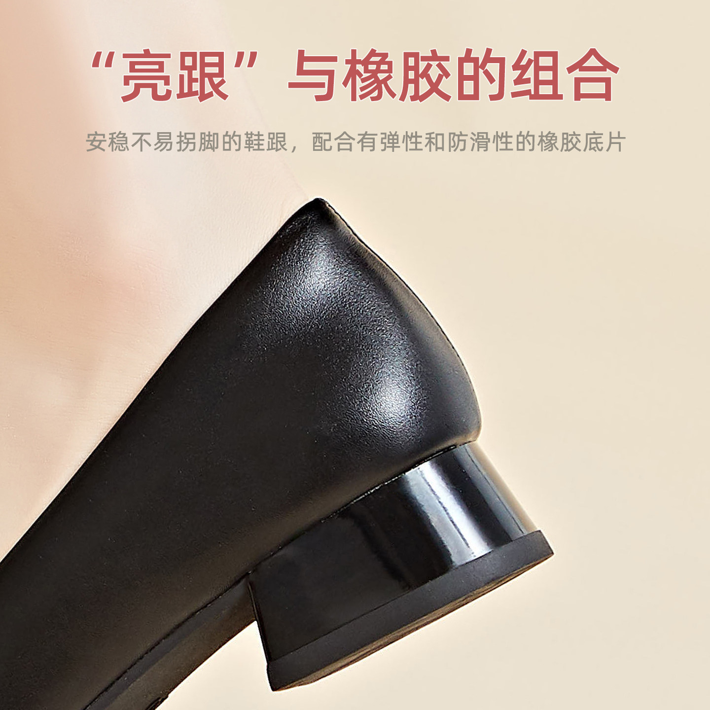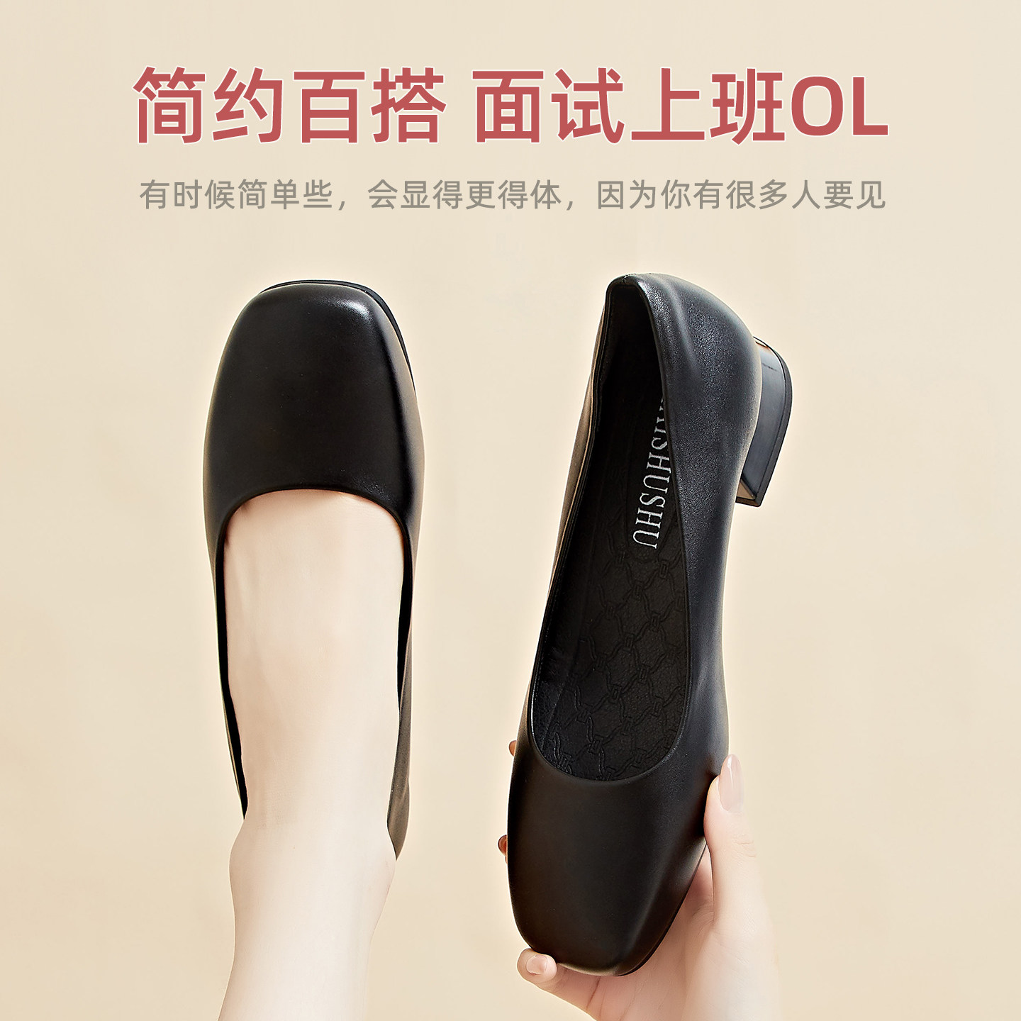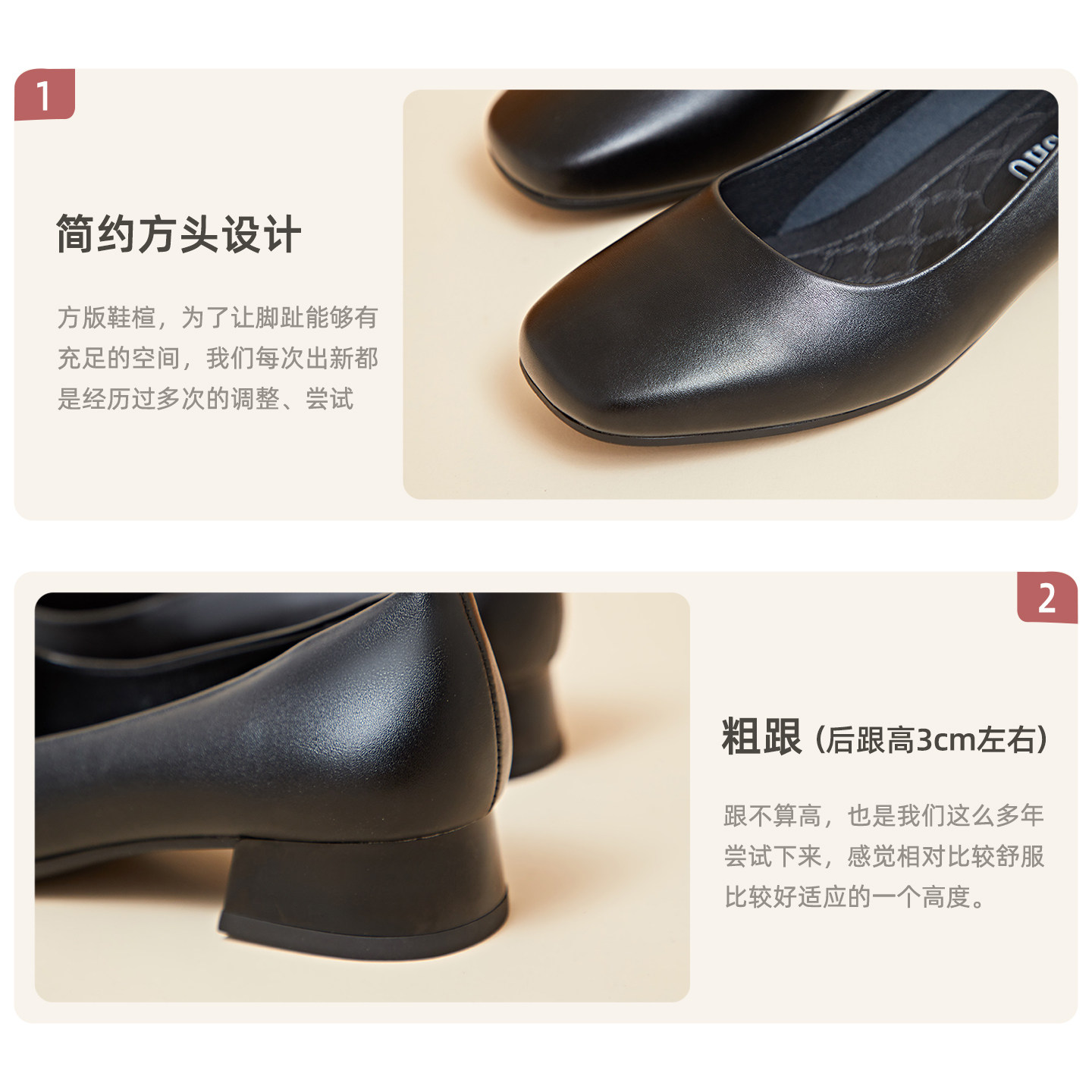 📚 方头3cm粗跟黑色皮鞋女软底职业工作鞋低跟乘务员久站不累女单鞋