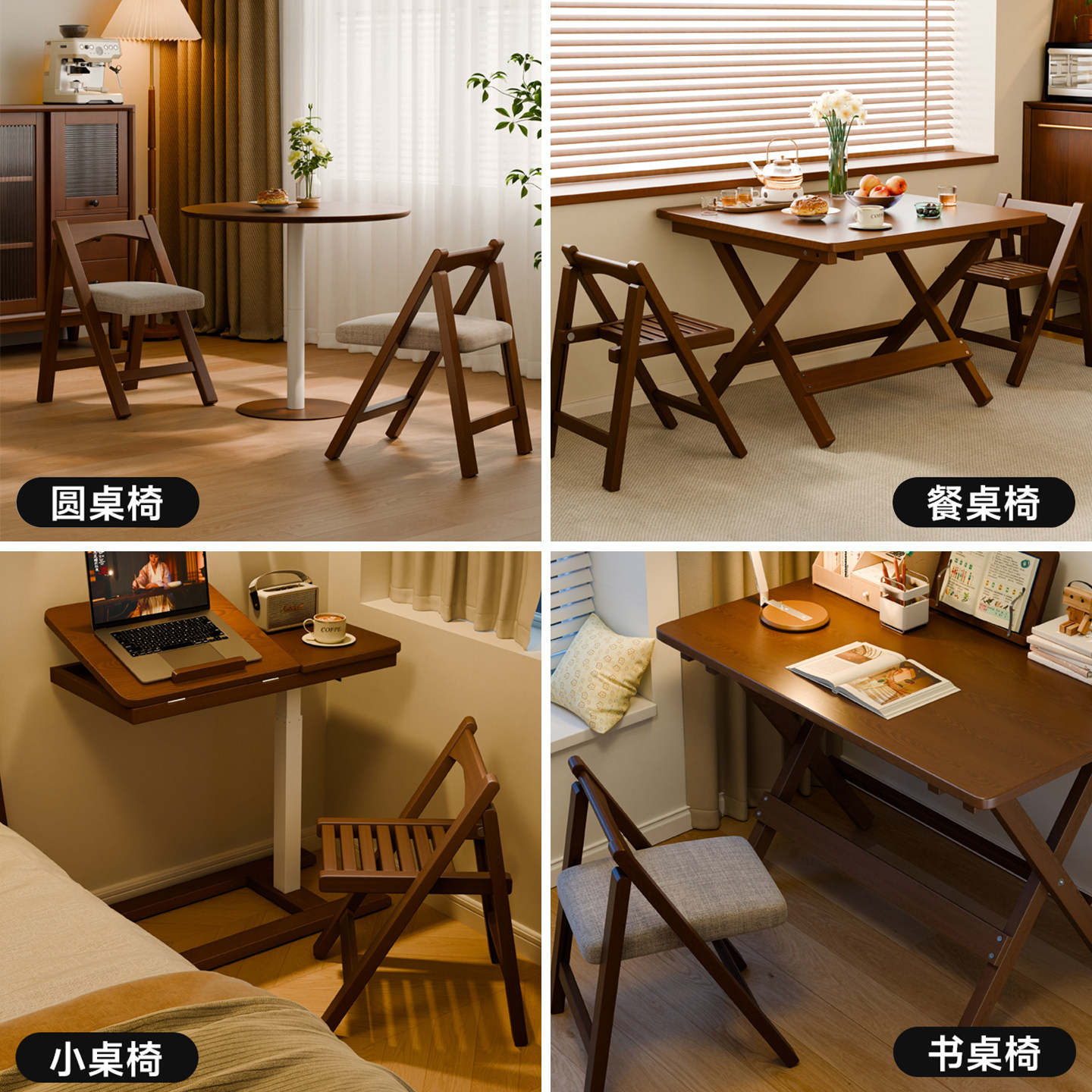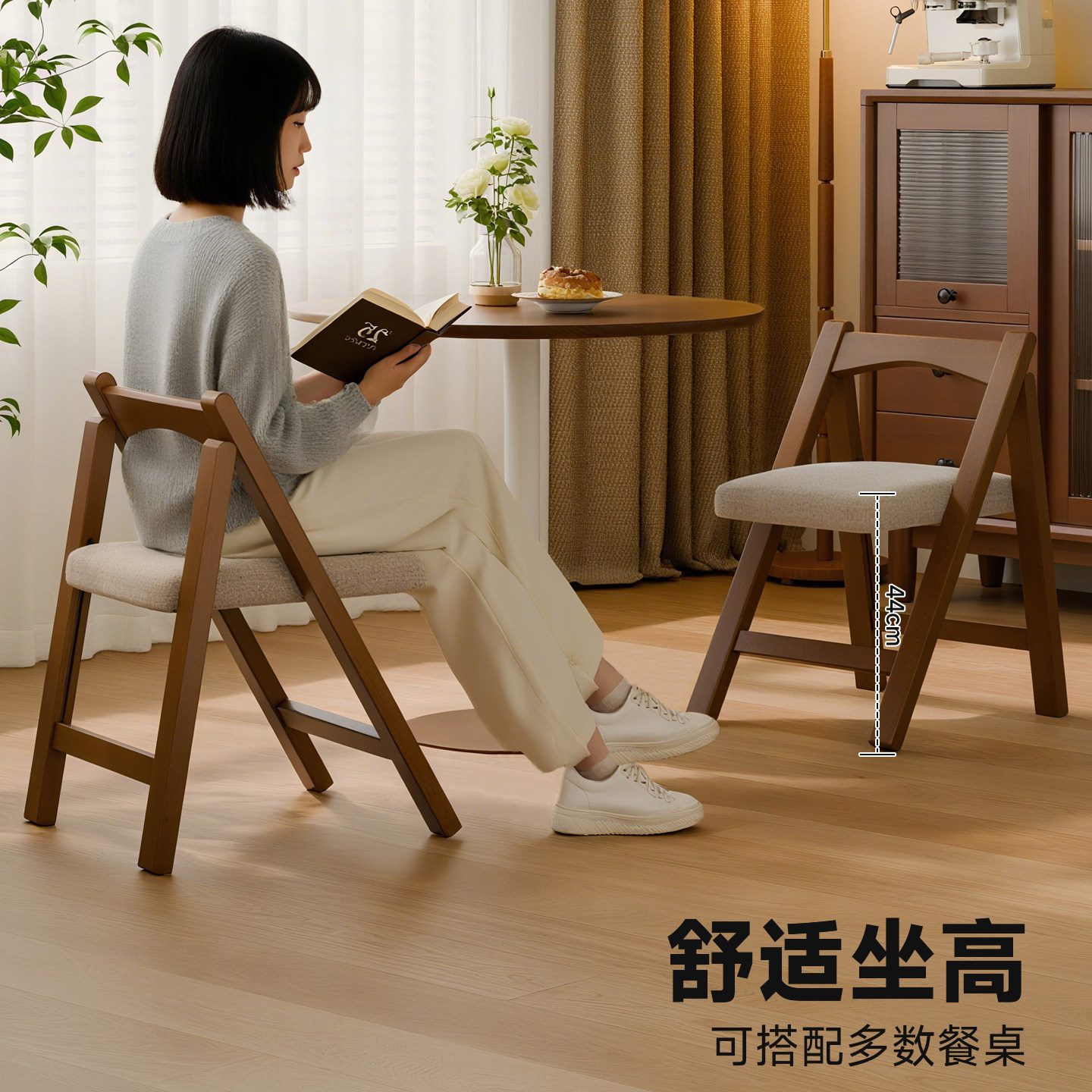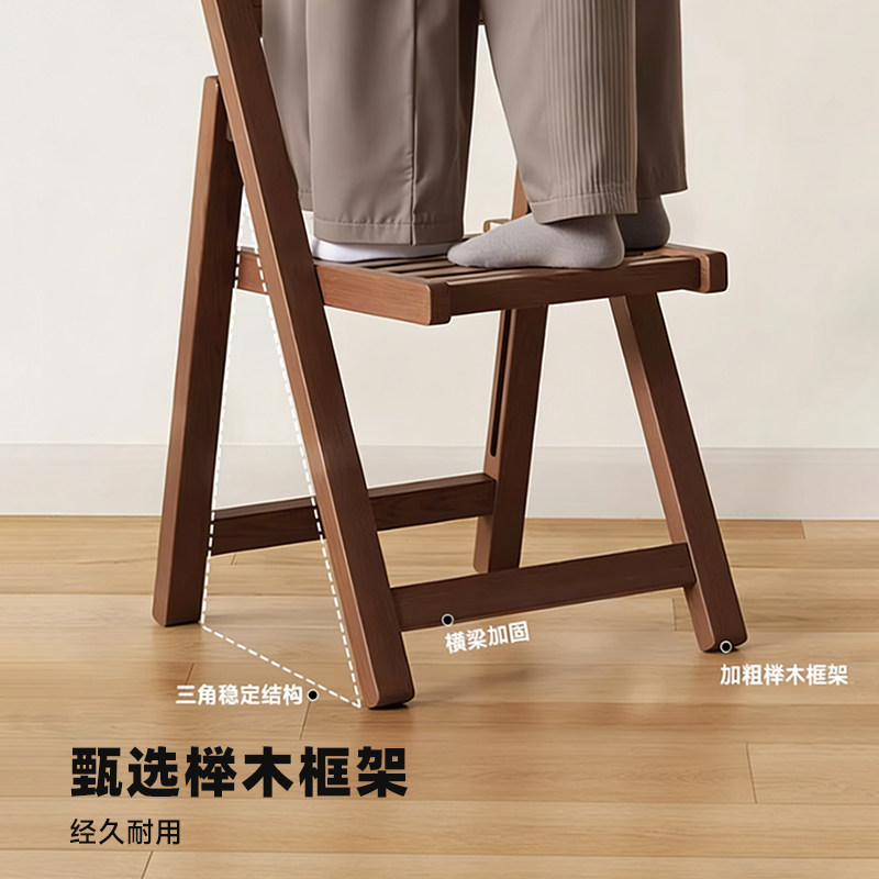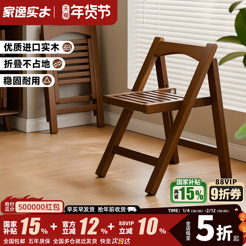 📚 家逸实木餐椅家用小户型椅子可叠放靠背餐桌椅中古风不占地餐凳子