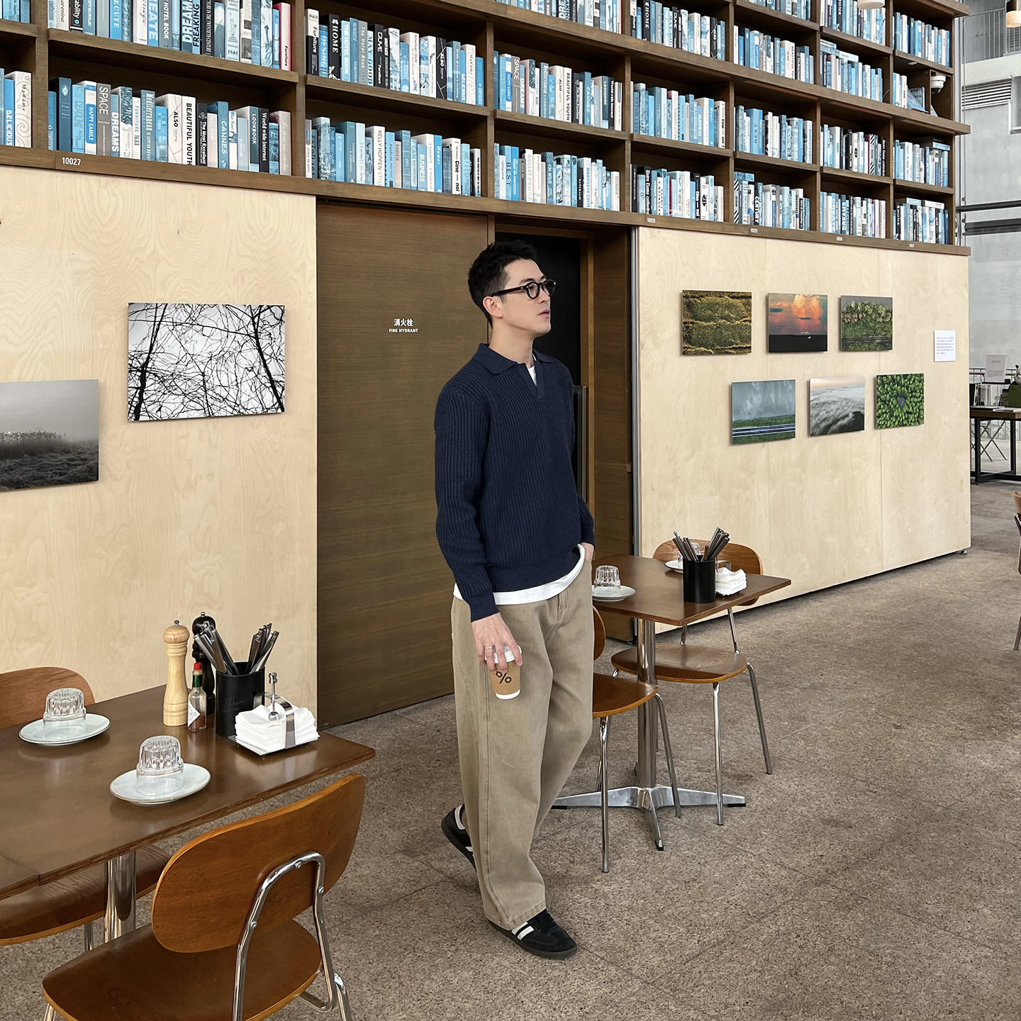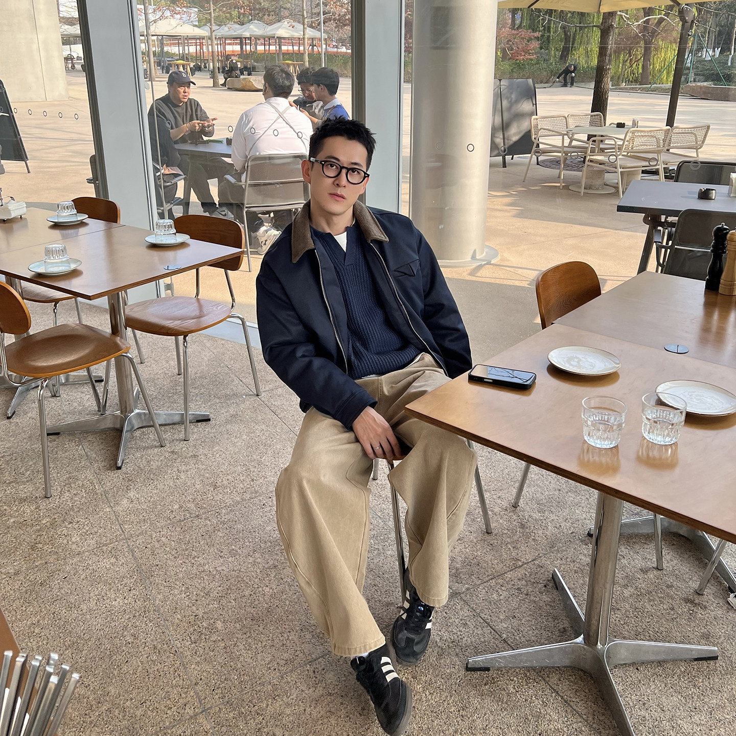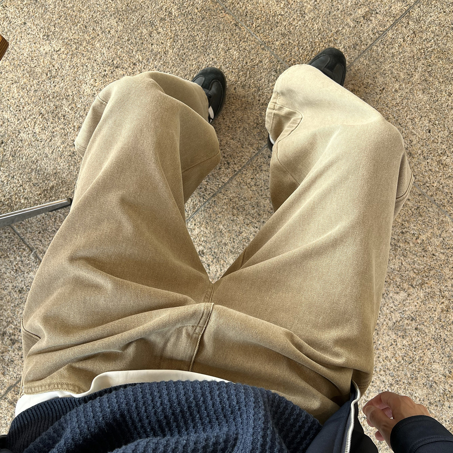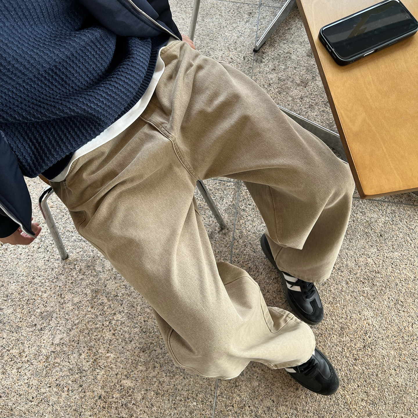 📚 Nick Tian 卡其色半松紧腰休闲裤男新款通勤高腰显瘦阔腿直筒裤子