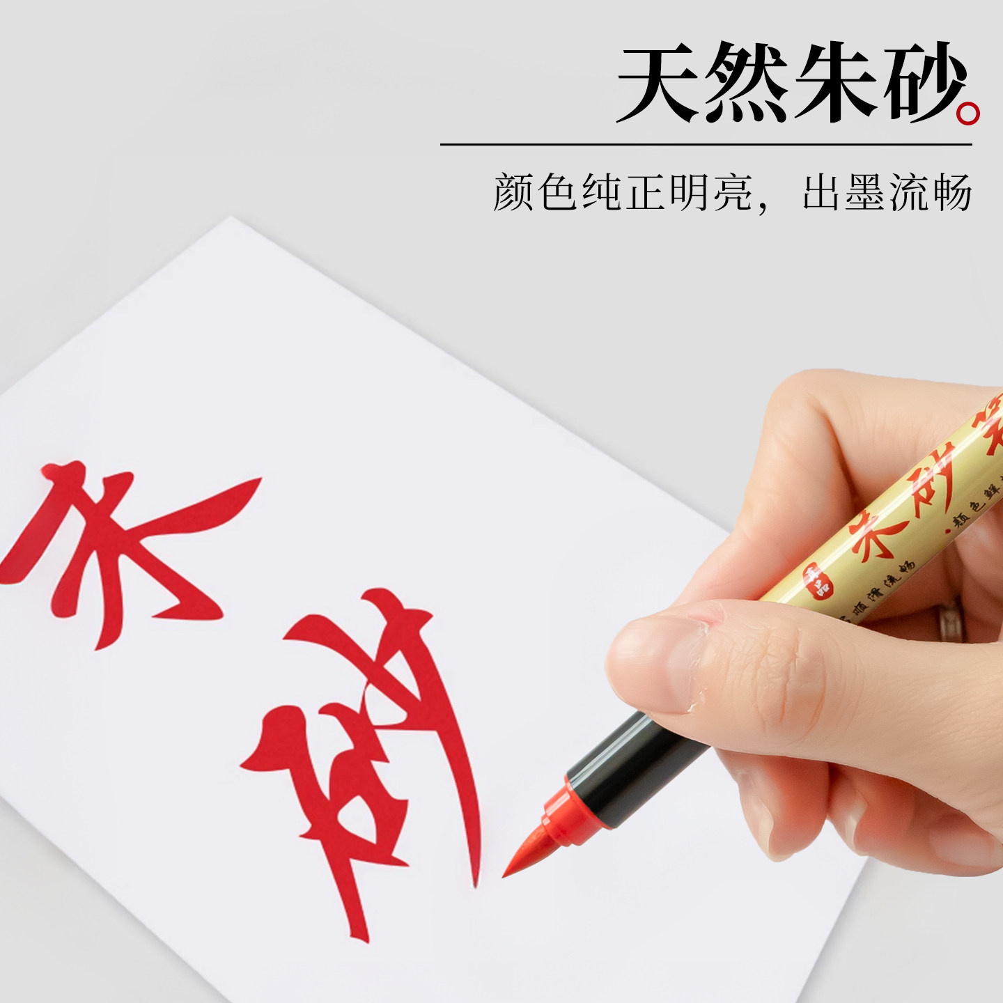 📚 朱砂笔符画道家专用含朱砂液红墨汁抄经书写喜字点睛启蒙软头毛笔