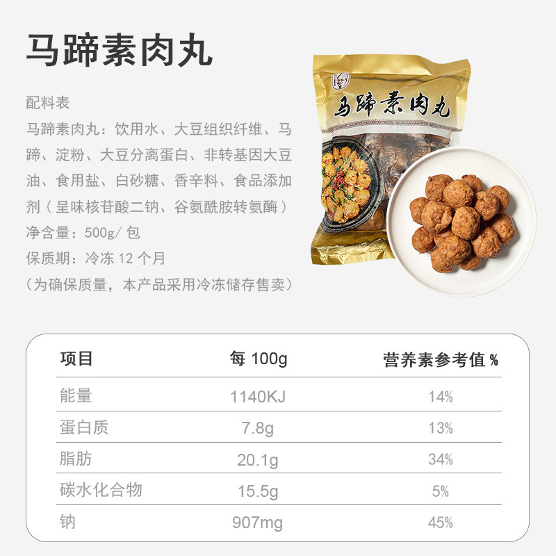 📚 冷冻品莲藕马蹄素肉丸500g纯素佛家豆制品寺院素斋菜仿荤火锅丸子