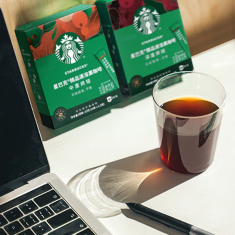 📚 星巴克黑咖啡冰美式速溶无糖添加纯黑咖啡粉10条盒装精品即溶咖啡