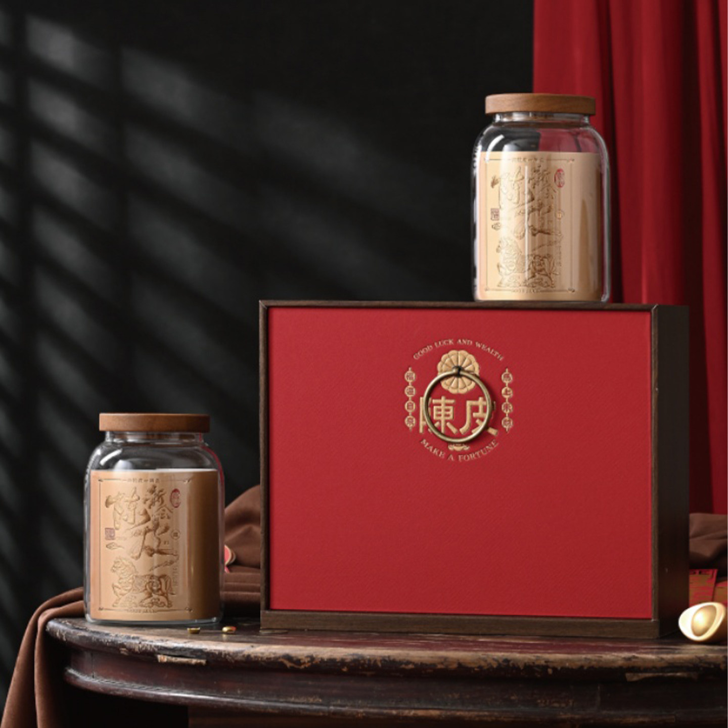 📚 高档新会陈皮3两装礼盒包装套装空盒玻璃瓶150g陈皮礼品盒密封罐