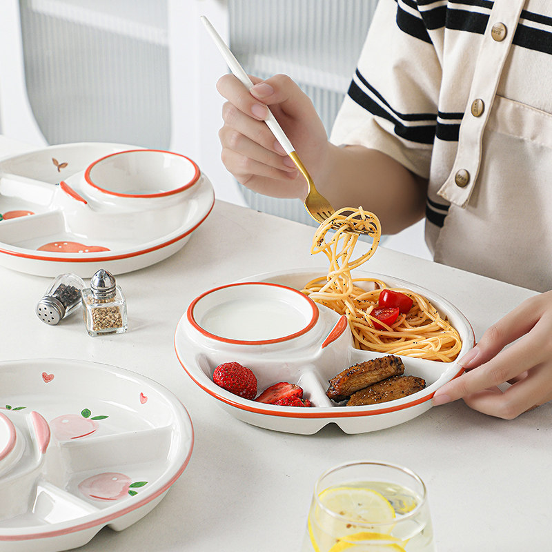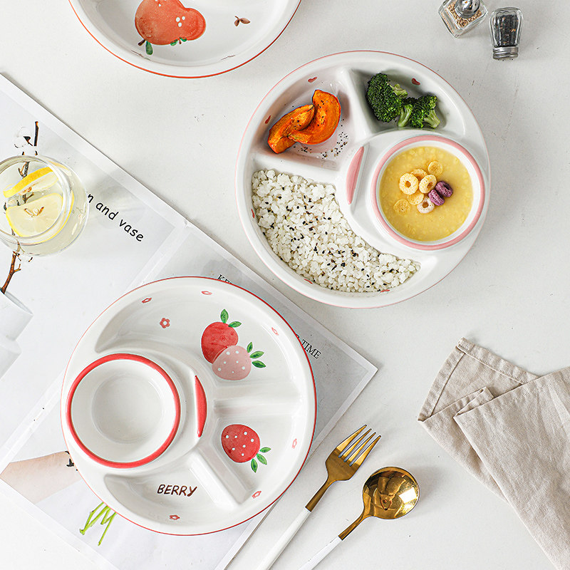 💥「釉下彩水果陶瓷饺子盘分格减脂盘」带你解锁可爱儿童美食新天地!券后价仅需17.8✨
