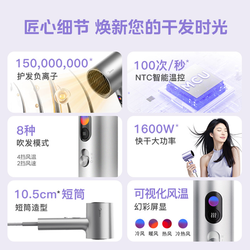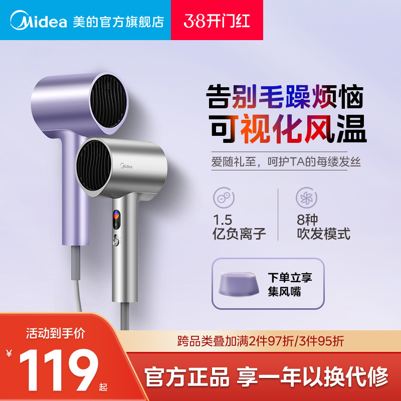 📚 美的吹风机家用负离子护发速干智能电吹风大功率吹风筒礼物FD205