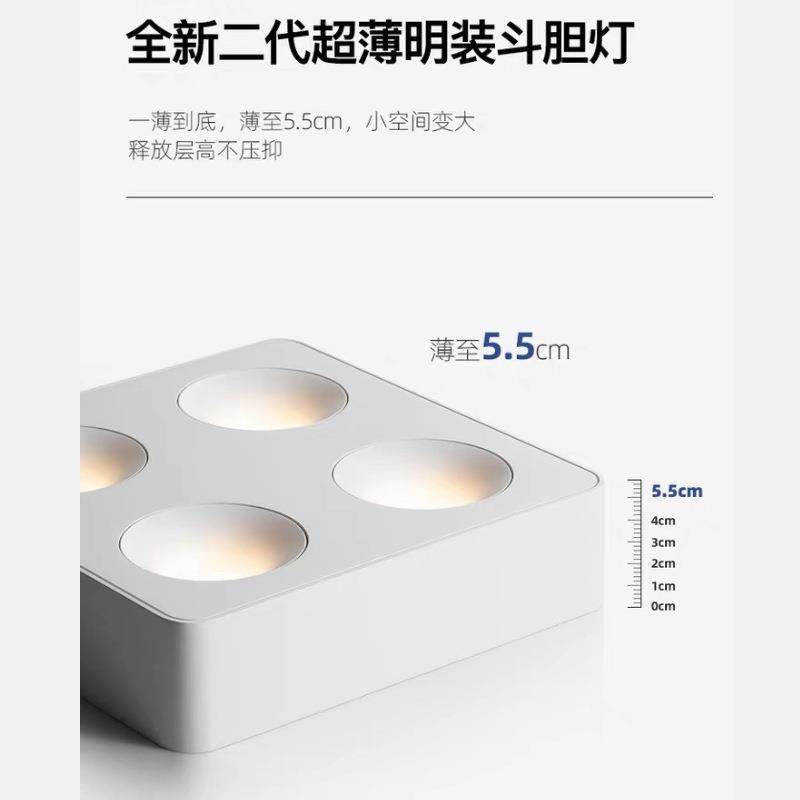 📚 超薄明装led防眩斗胆射灯无主灯客厅卧室四头方形吸顶筒灯3500k