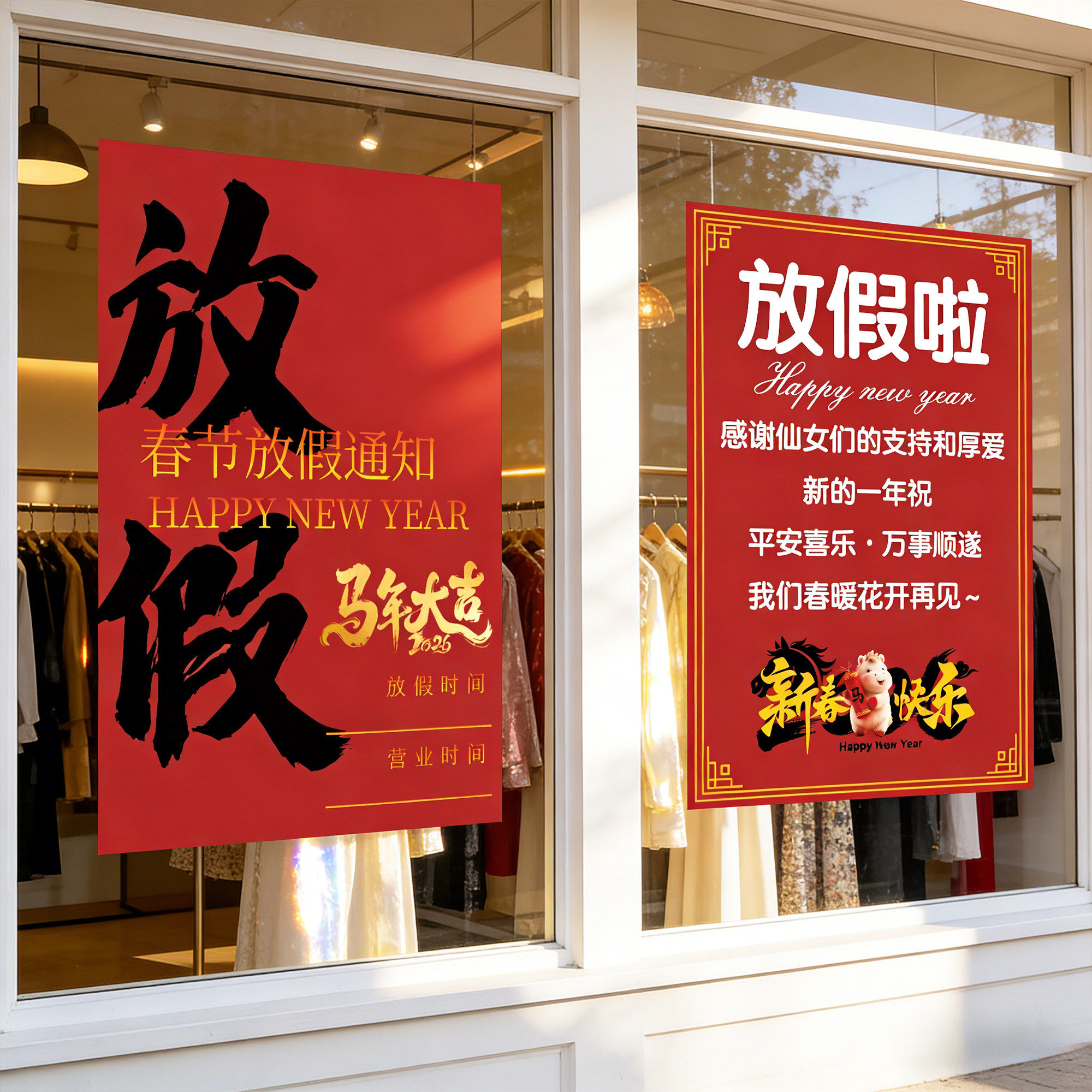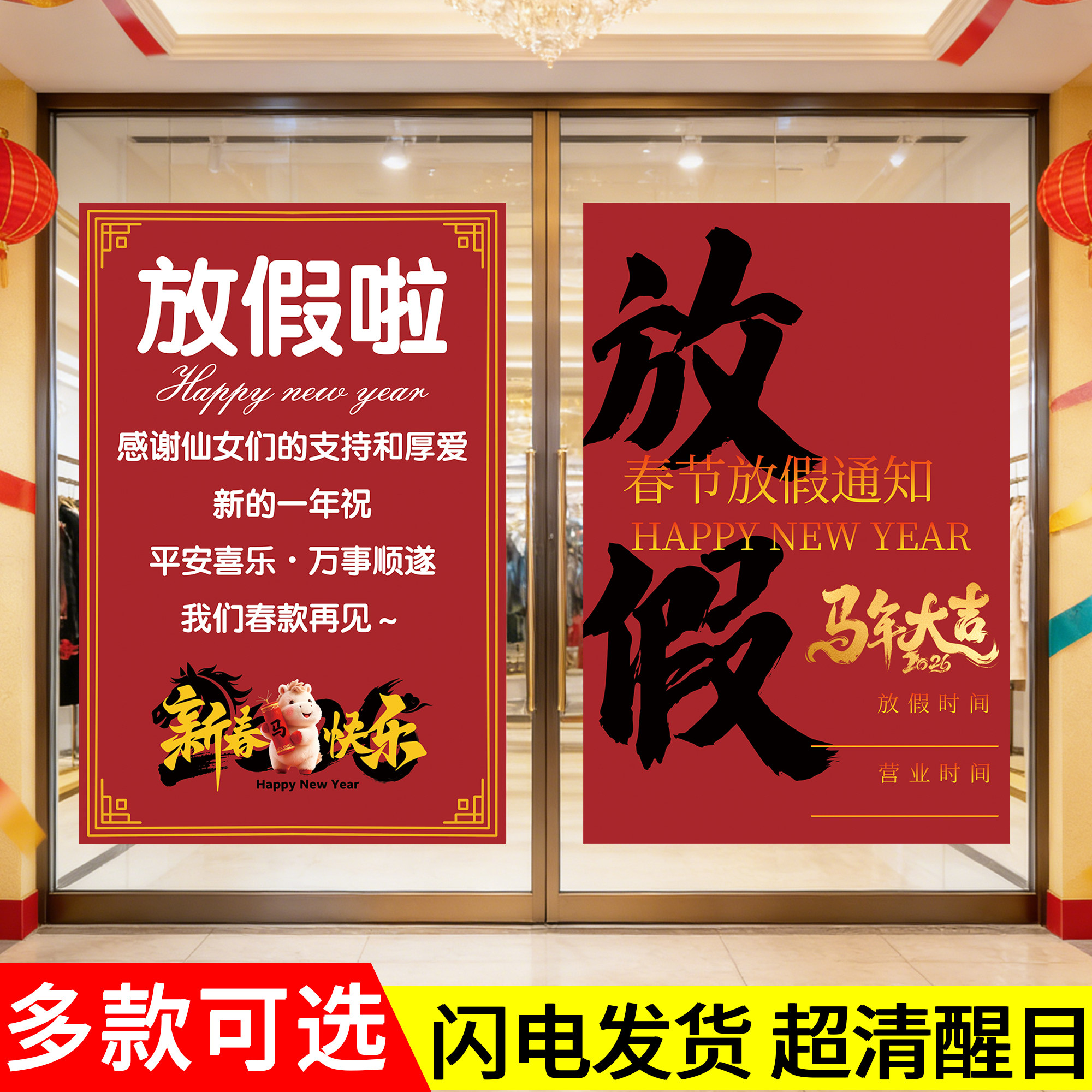 📚 2026马年春节放假通知海报理发服装商场店铺橱窗过年放假通知海报