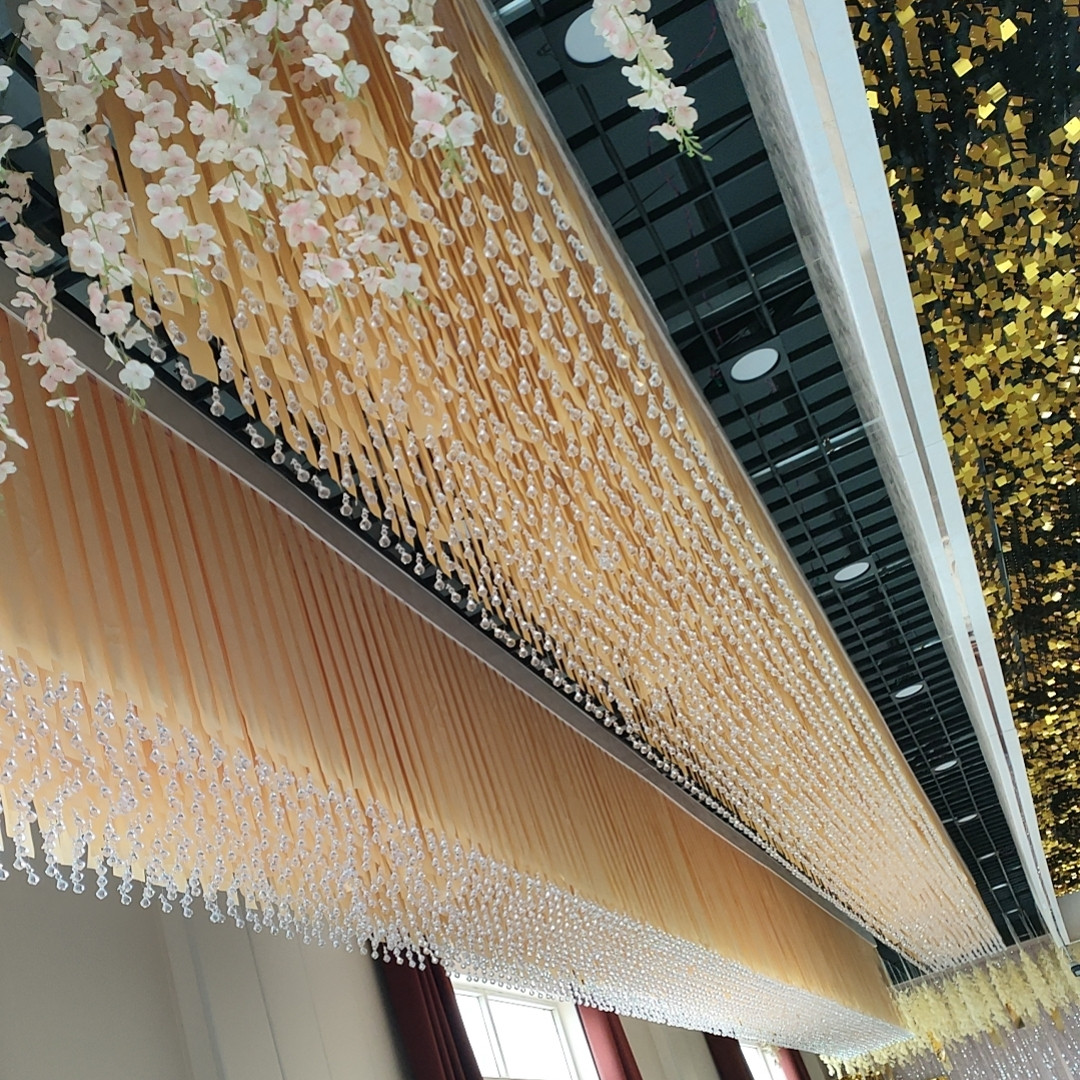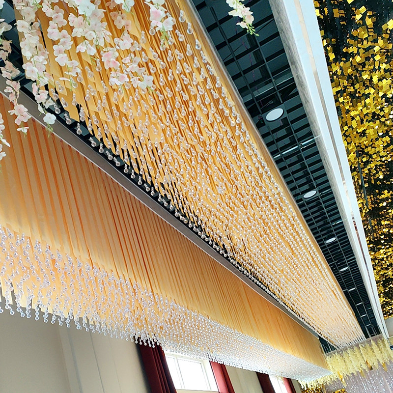 📚 高端婚礼大堂吊顶布置大钻石水晶丝带多色可定制结婚庆公司布置