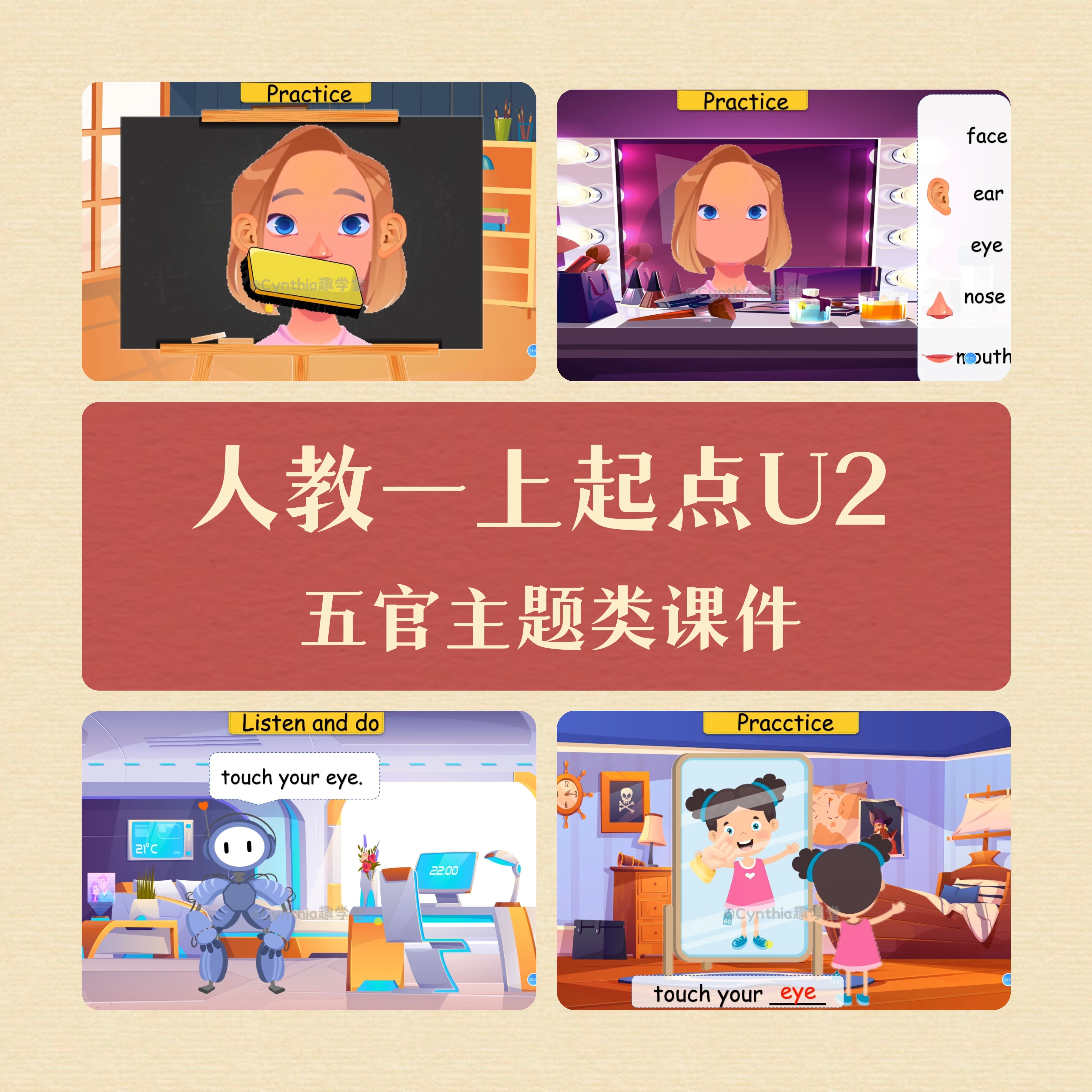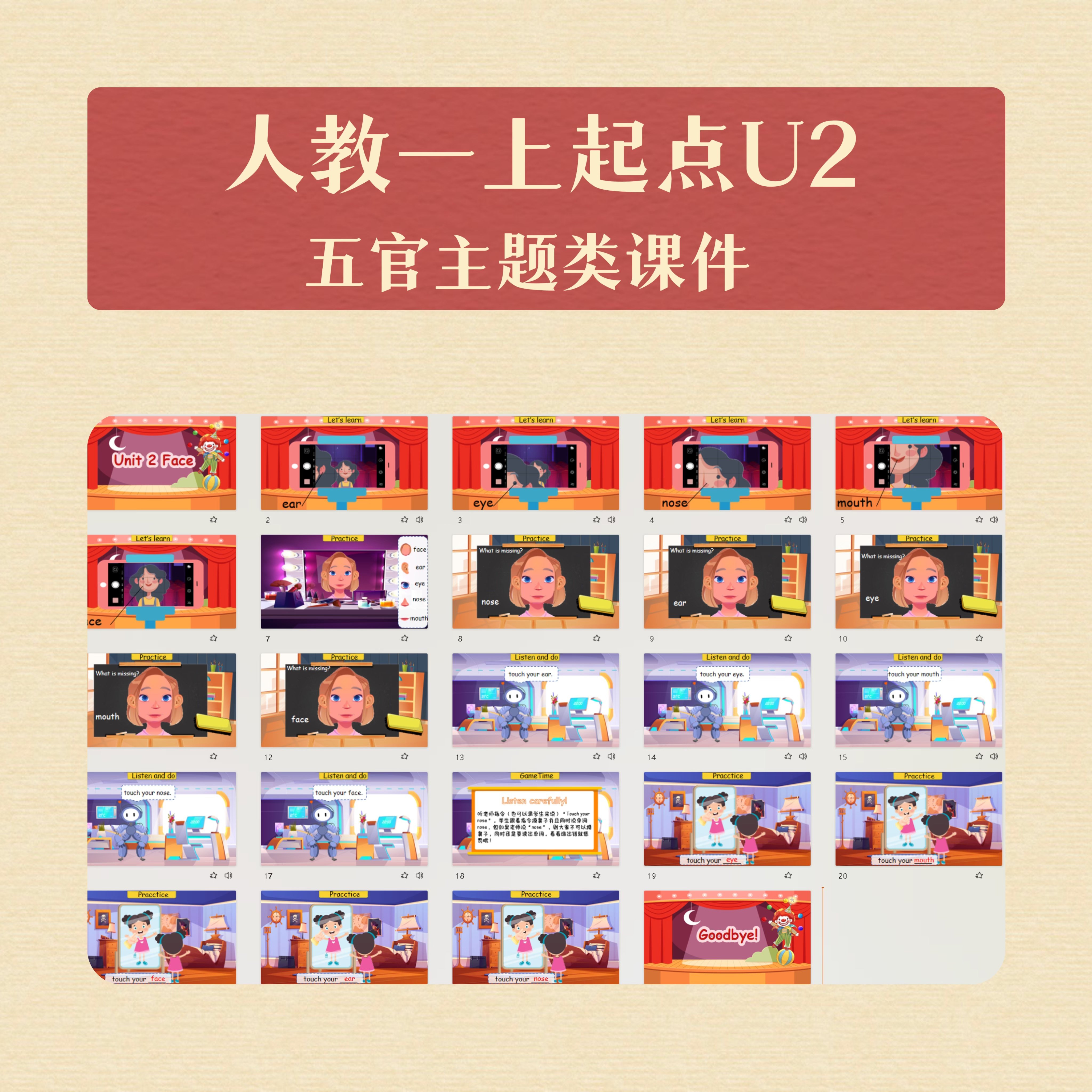 📚 希沃+wps版Face五官主题ppt课件一年级起点Cynthia趣学堂原创
