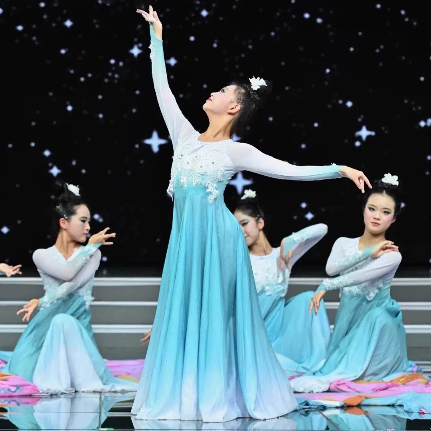 📚 新款儿童芙蓉似锦满城花舞蹈演出服少儿群舞古典舞歌伴舞飘逸长裙