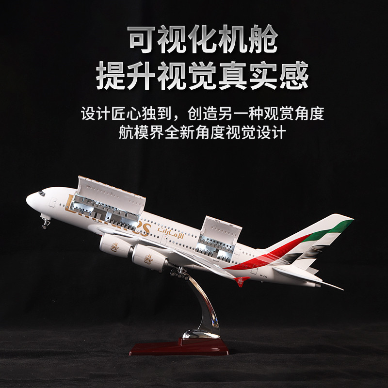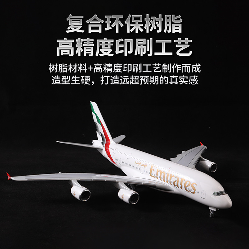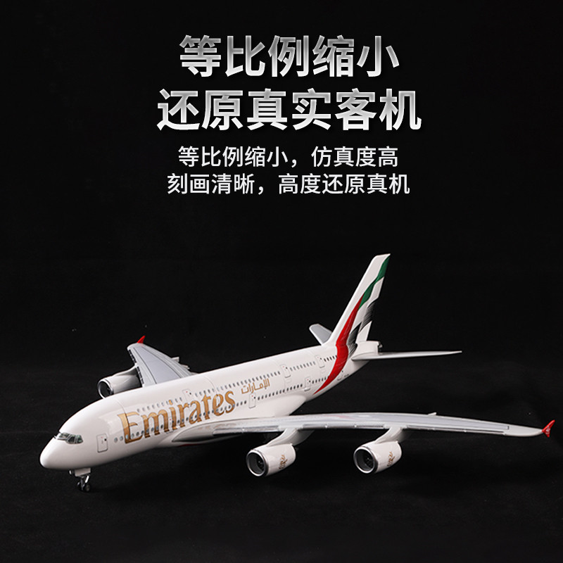 📚 阿联酋航空A380仿真飞机模型客机玩具摆件收藏礼物航模可打开舱门