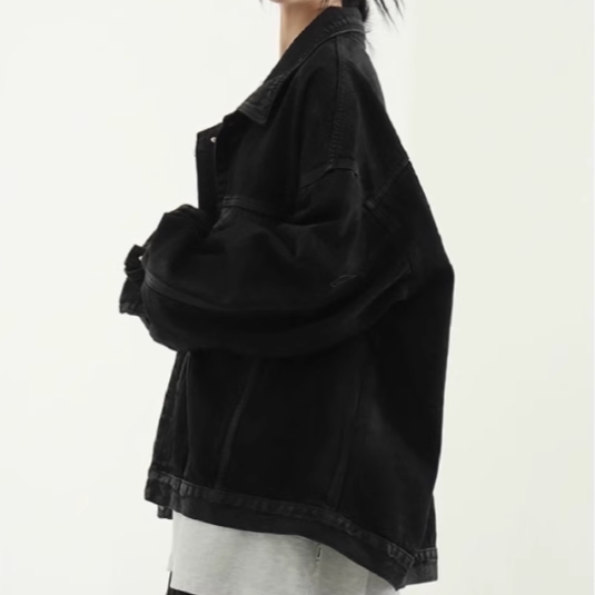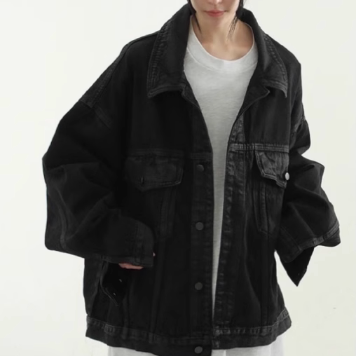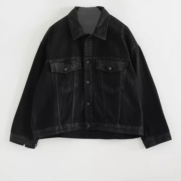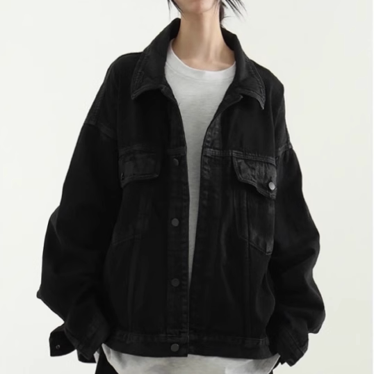 📚 韩国代购24F/W oil coated black denim jacket (unisex)牛仔夹克