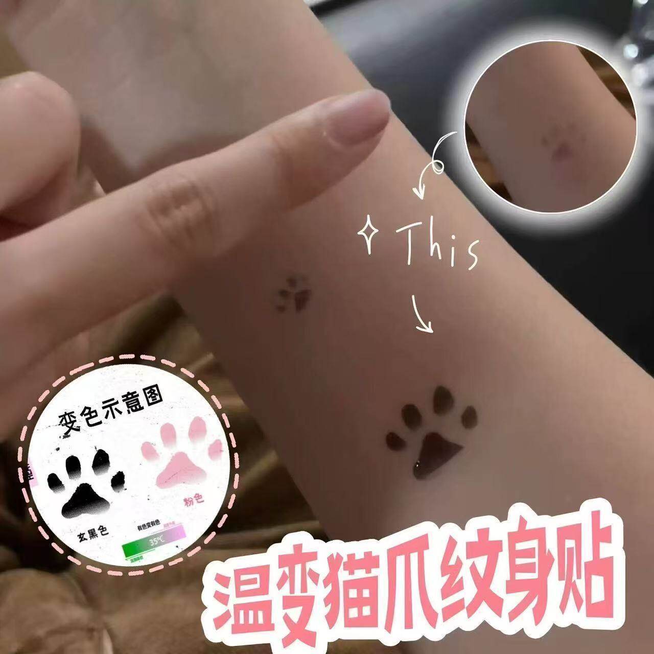 📚 猫咪温变纹身贴·全是猫爪体温变色可爱爱心温度变色身体彩绘贴纸