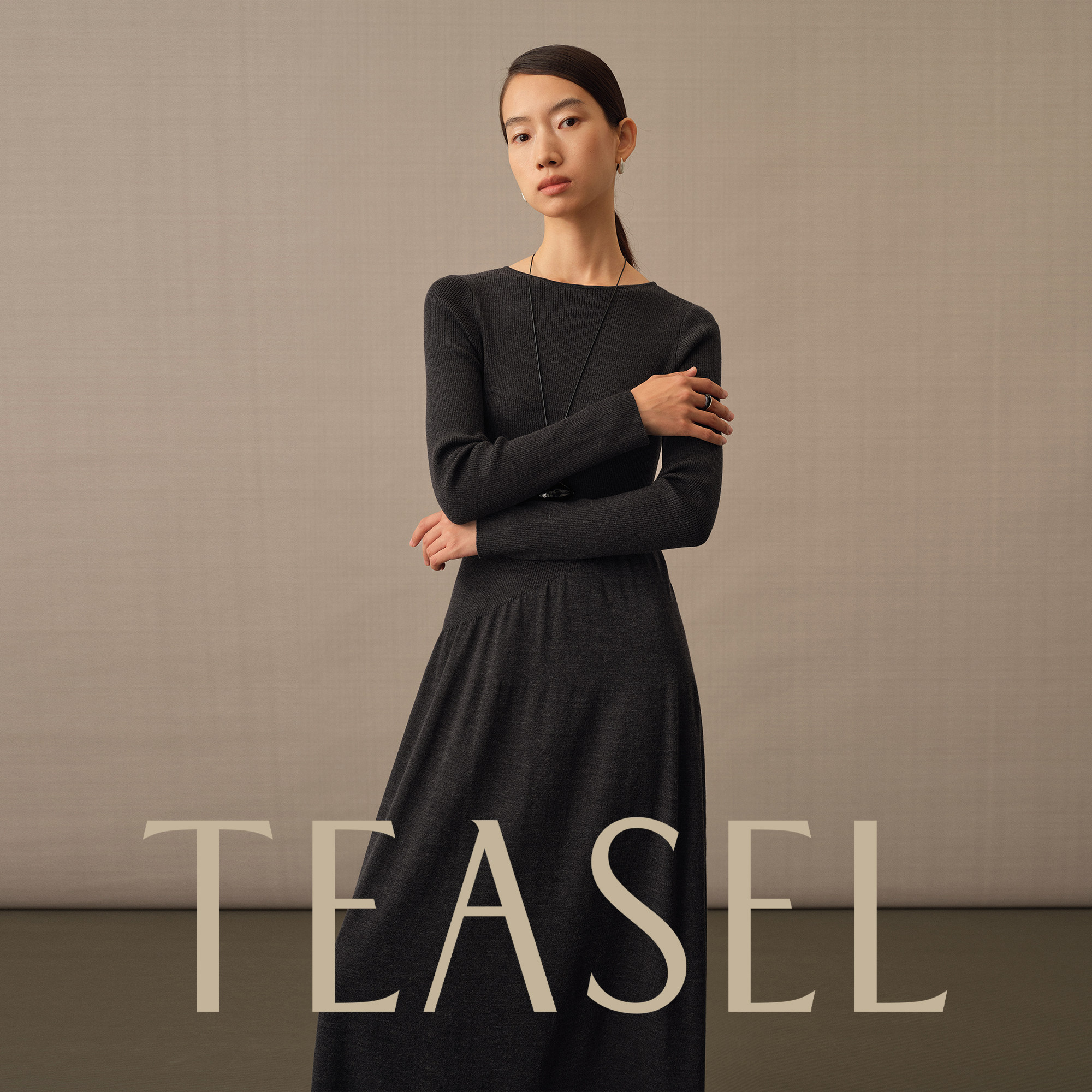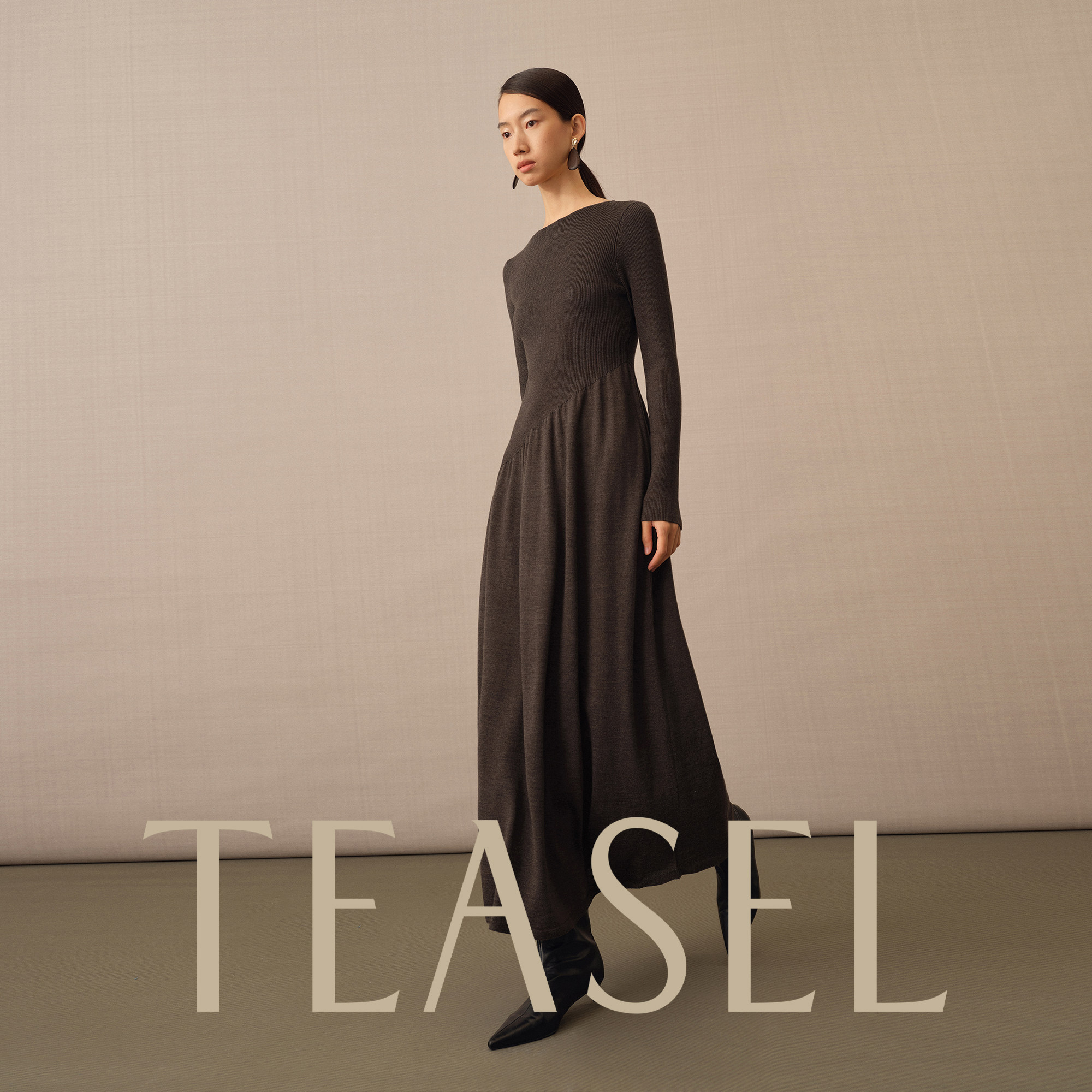 📚 TEASEL「优雅化身」可机洗可烘干羊毛斜裁裙摆纸片人百褶连衣裙