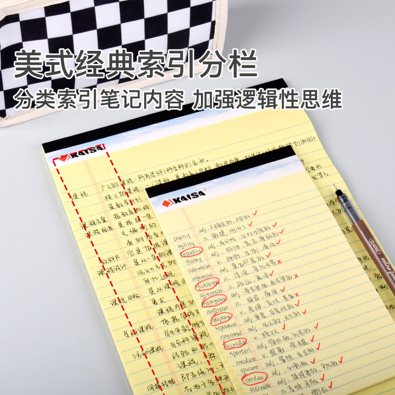 📚 凯萨KAISA美式拍纸本Legal Pad薄脆本a4笔记本美剧同款凯撒米黄色可撕A5草稿纸学生美国A4草稿本单词本