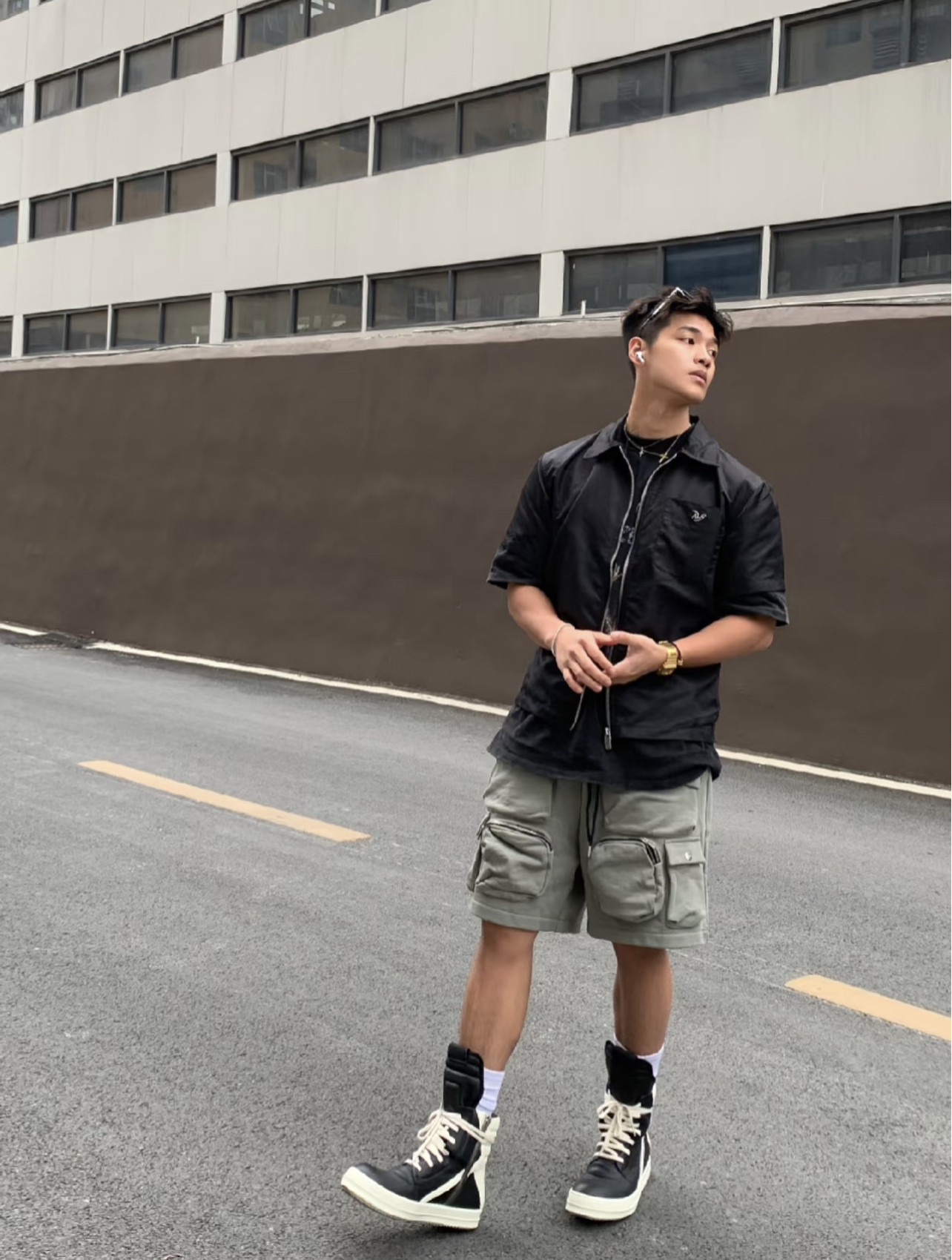 📚 DUJIA 25SSRo暗黑风格Owens穿搭主线荔枝纹牛皮全黑白高帮倒三角