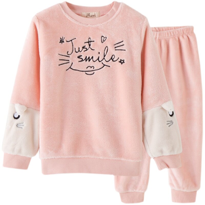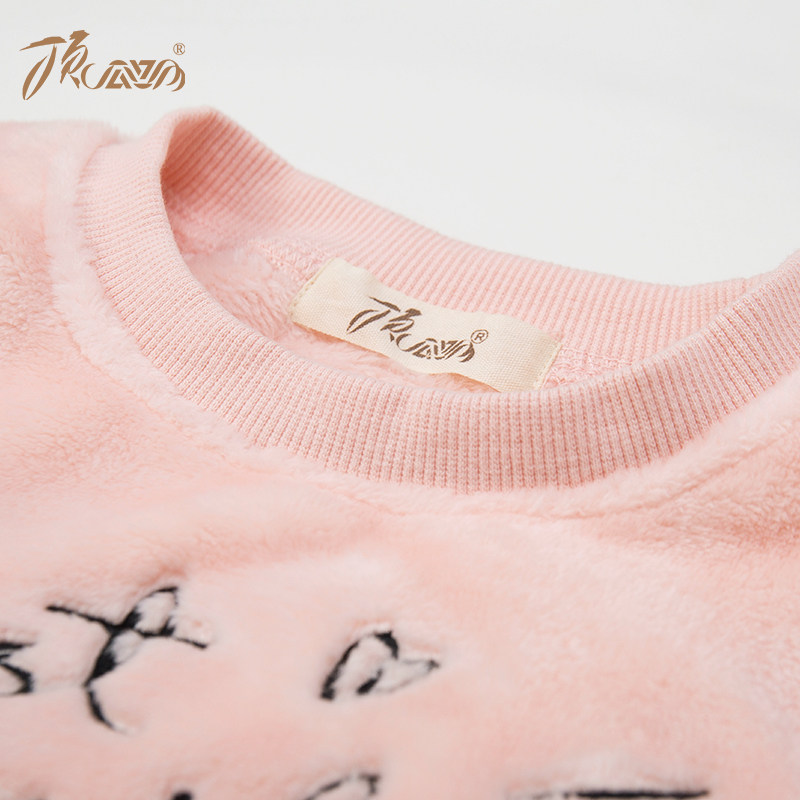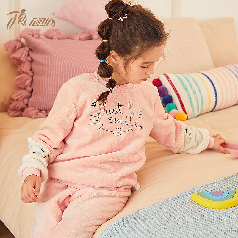 📚 顶呱呱顶瓜瓜儿童睡衣女童圆领套头珊瑚绒长袖长裤可爱家居服套装