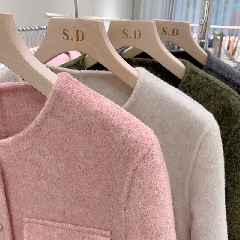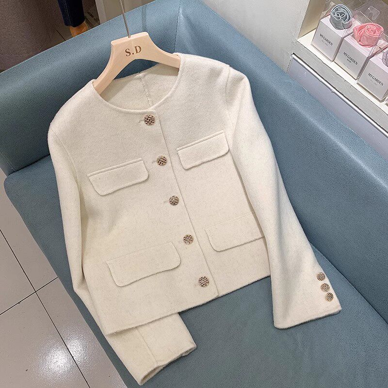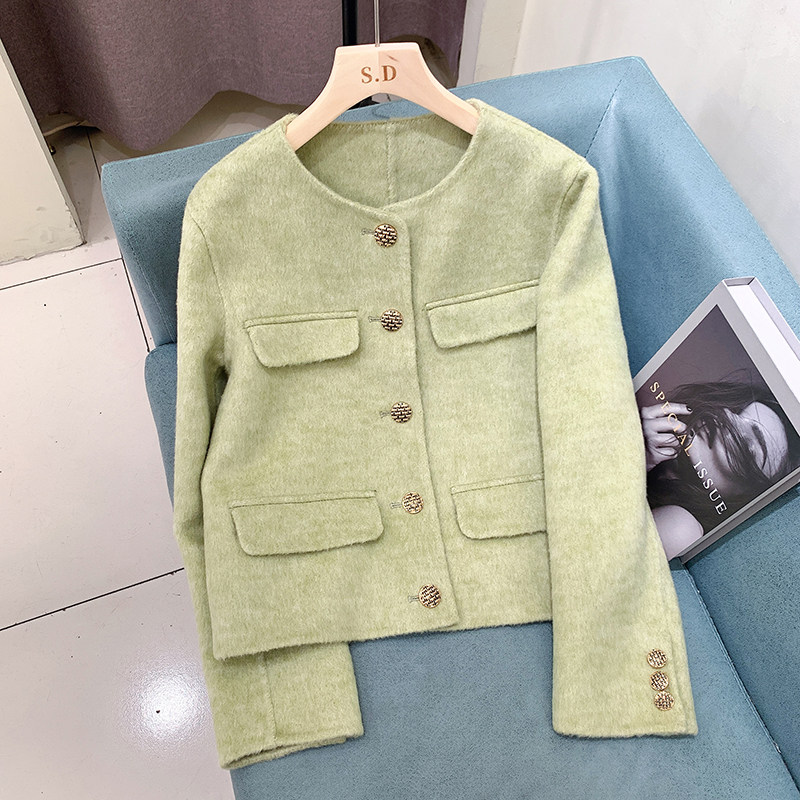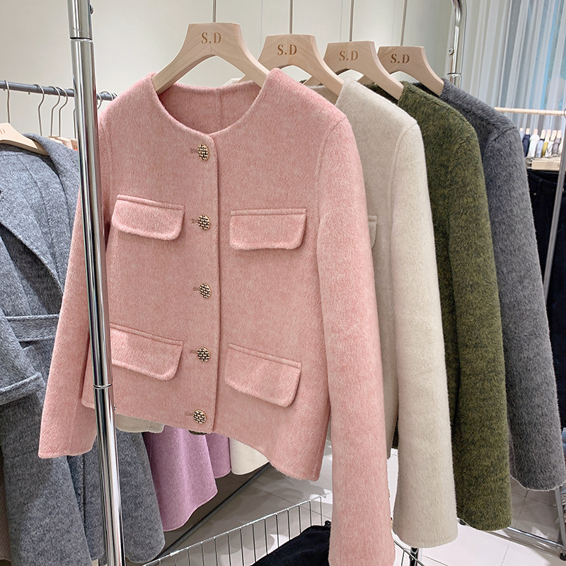 📚 秋冬设计师款小香风双面羊毛大衣女士小个子时尚圆领短款羊绒外套