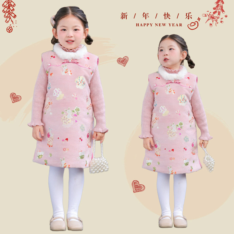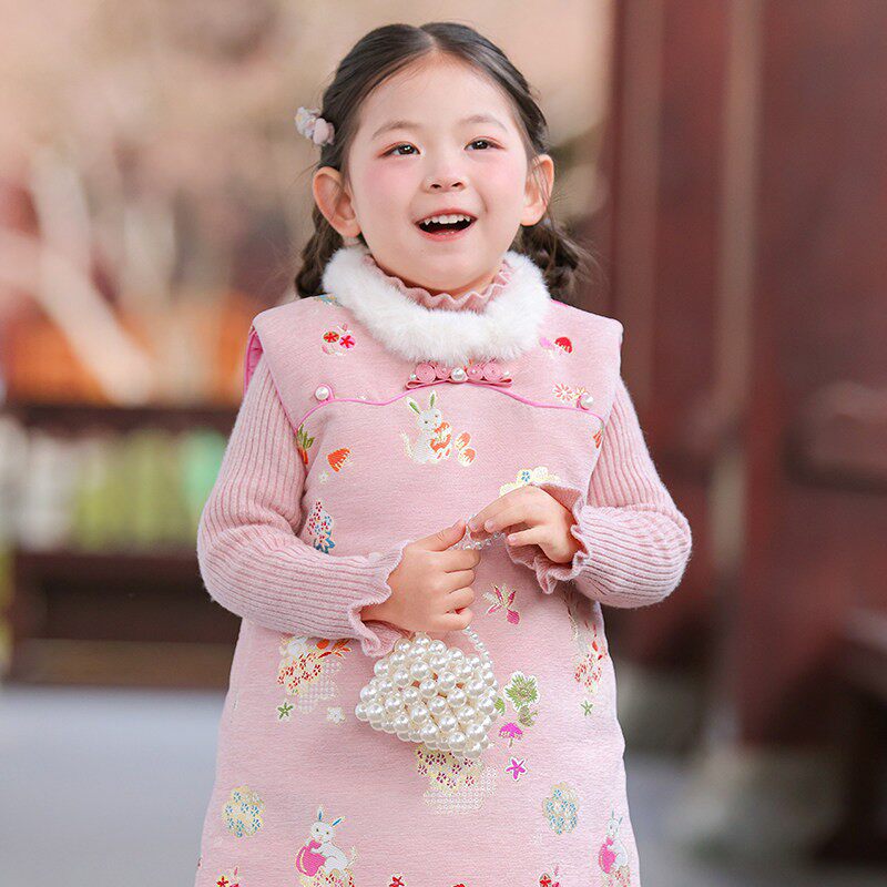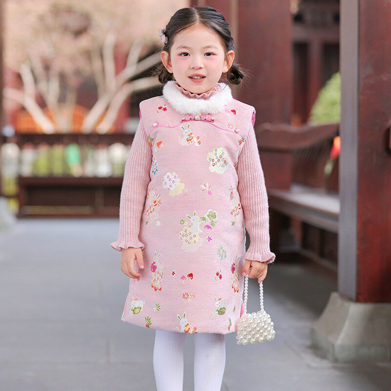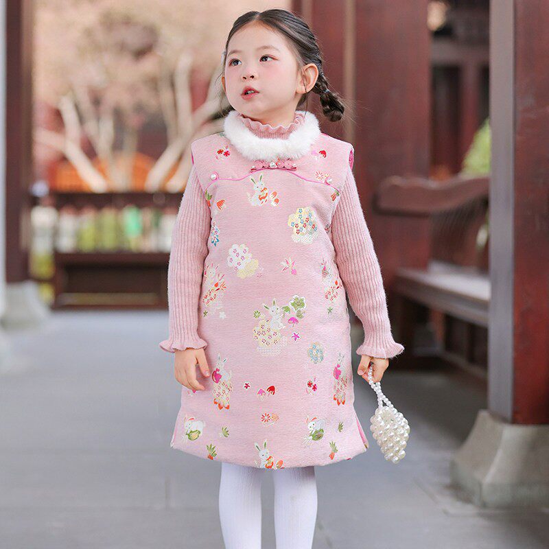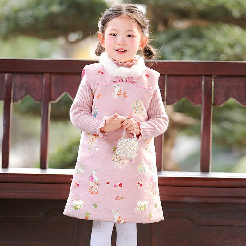 📚 冬季儿童旗袍背心裙中长款女童拜年服女孩新中式可爱洋气连衣裙