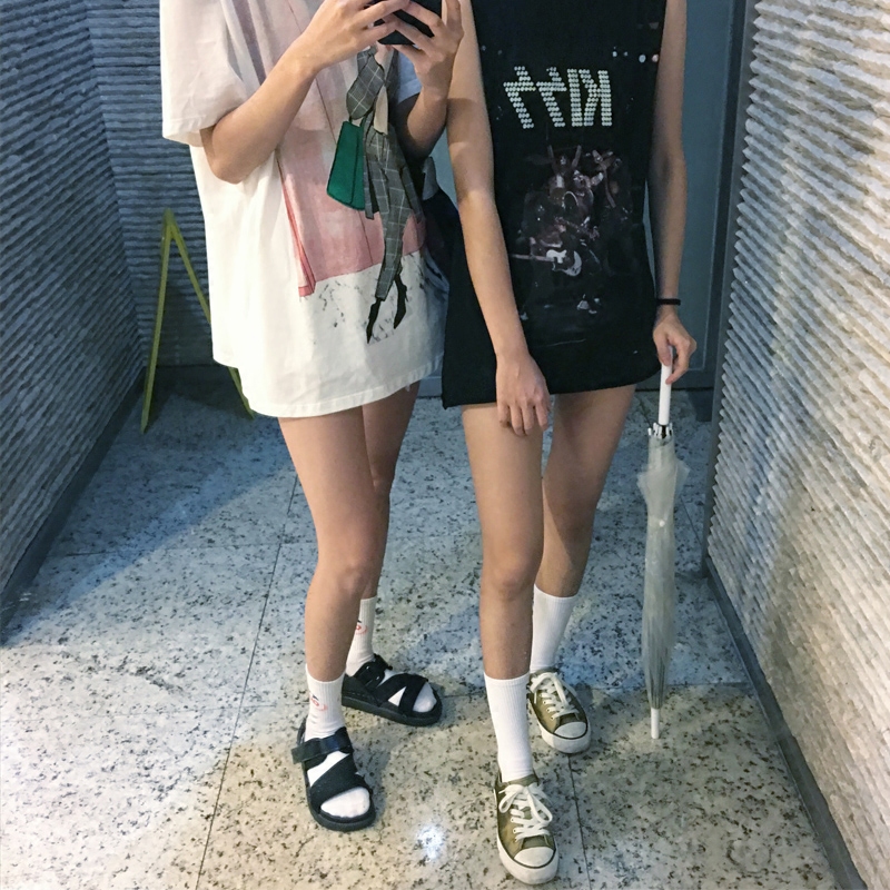📚 韩国INS原宿港风简约纯色黑白百搭中高筒棉袜子 ulzzang男女长袜