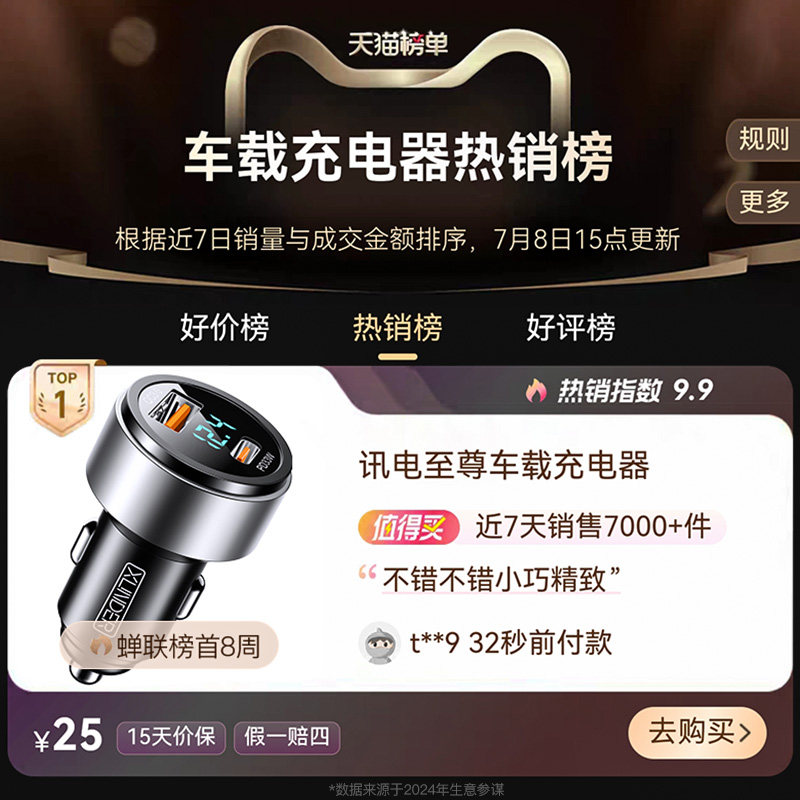 📚 车载充电器手机超级快充头点烟器转换插头车充插座汽车用usb接口