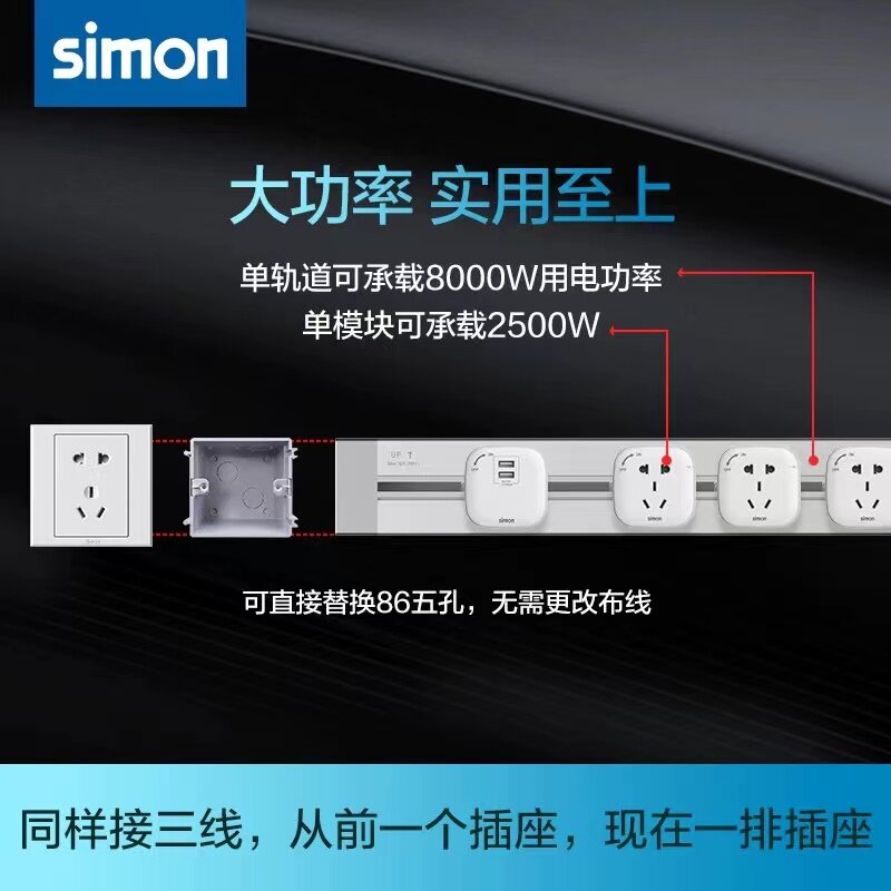 📚 西蒙可移动电力轨道插座多功能多场所滑轨排查不带线