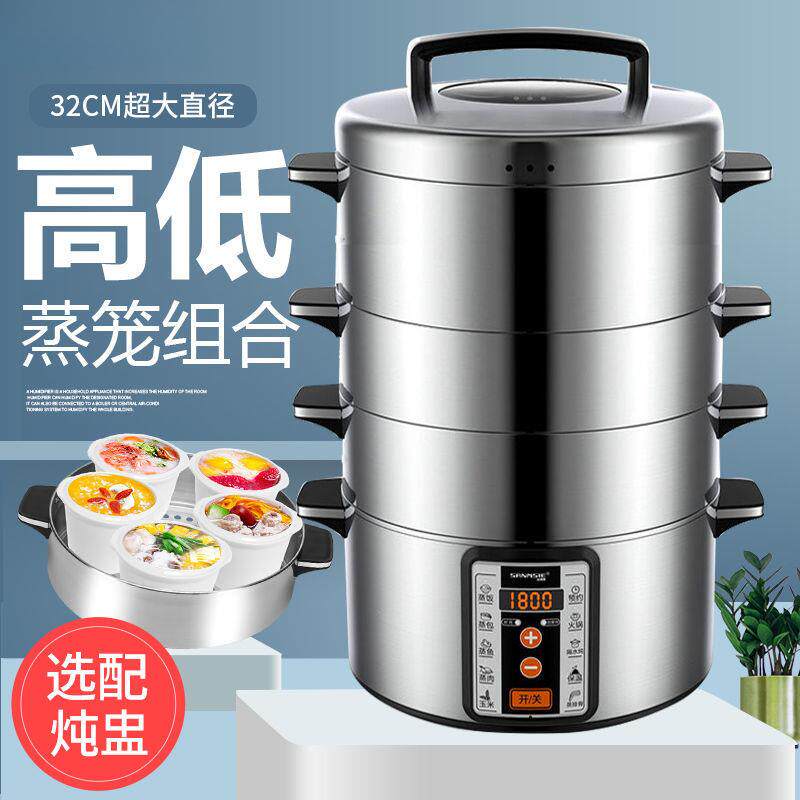 📚 斯32cm家用电锅电蒸锅多功能两层三层多层大容量不锈钢电蒸笼包邮